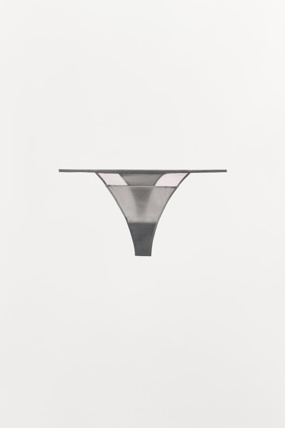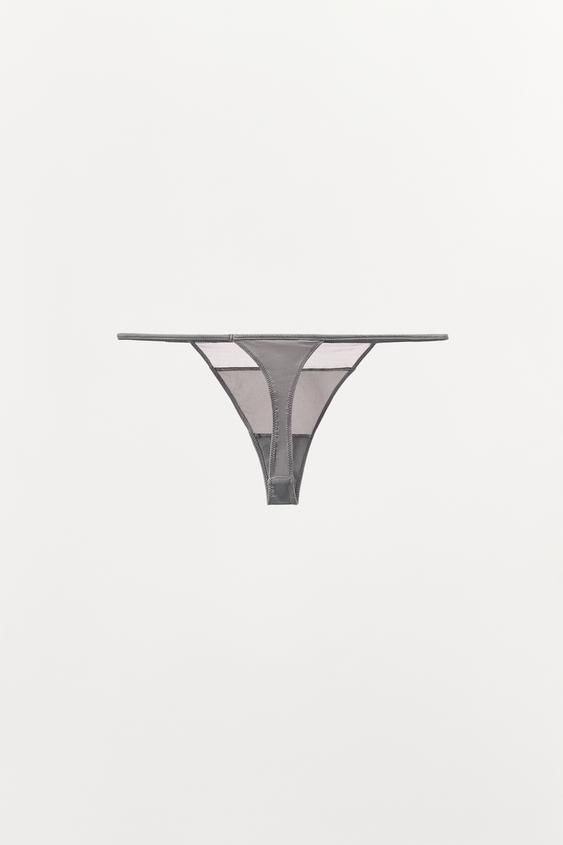 ZARA ТРУСЫ ТАНГА ИЗ КОМБИНИРОВАННОГО ТЮЛЯ, ОТТЕНКИ СЕРОГО
