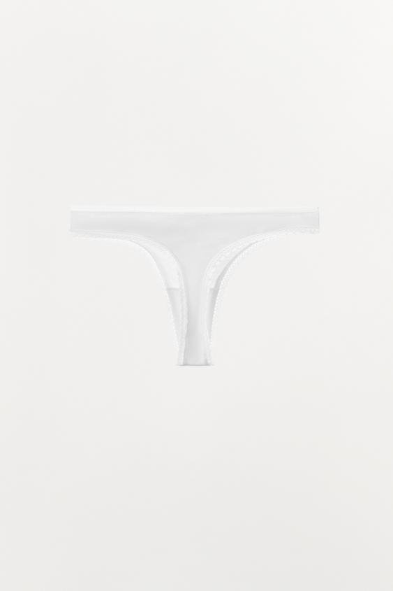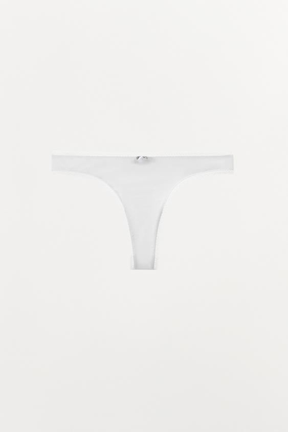 ZARA ТРУСЫ ТАНГА POINTELLE С ЦВЕТКОМ, БЕЛЫЙ