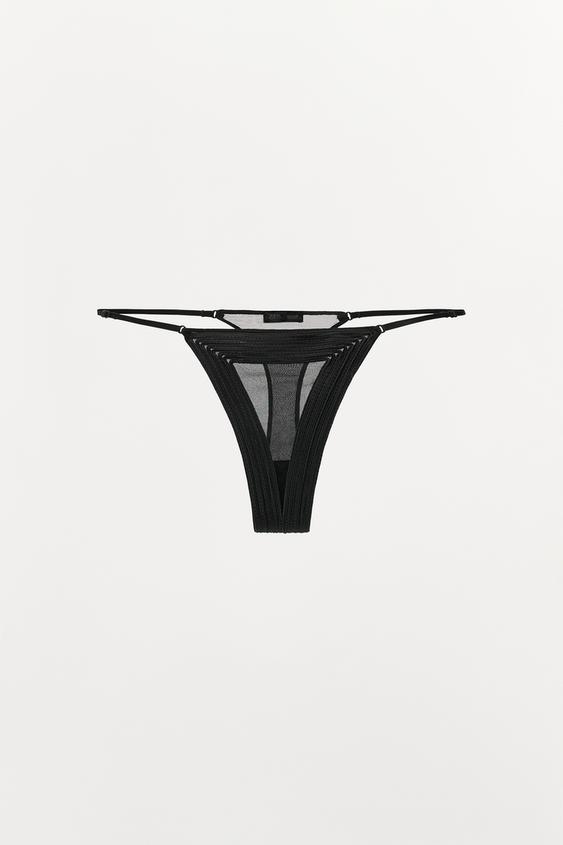 ZARA ТРУСЫ ТАНГА С РЕЛЬЕФНОЙ СТРУКТУРОЙ, ЧЕРНЫЙ