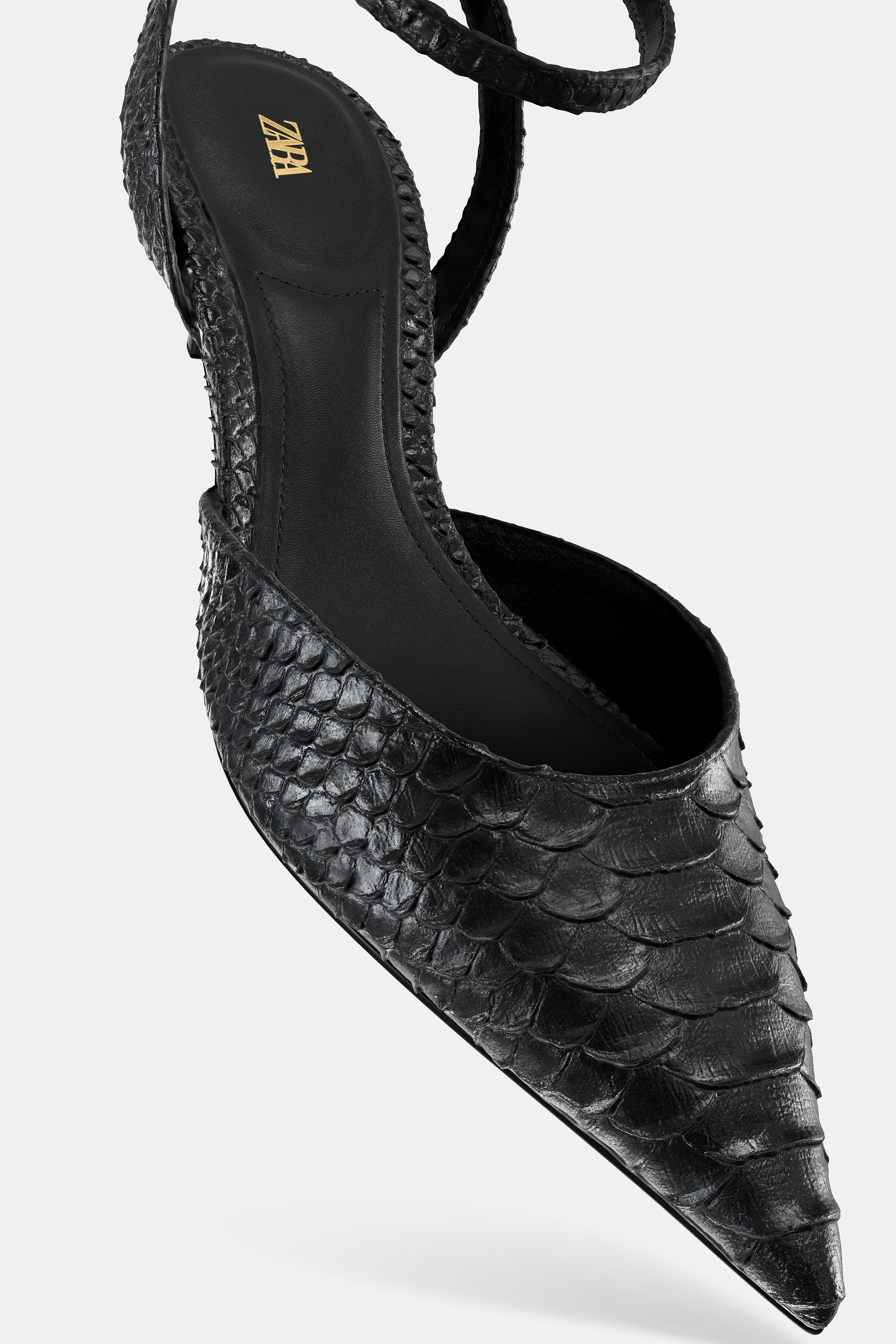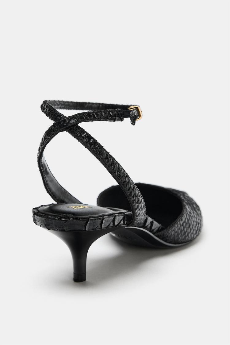 ZARA ТУФЛИ БЕЗ ЗАДНИКОВ С РЕЛЬЕФНЫМ УЗОРОМ, ЧЕРНЫЙ