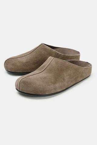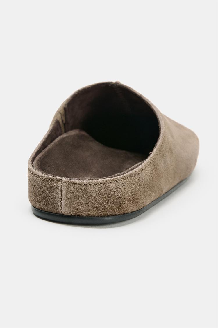 ZARA ТУФЛИ-МЮЛИ ИЗ СПИЛКА, СЕРО-КОРИЧНЕВЫЙ