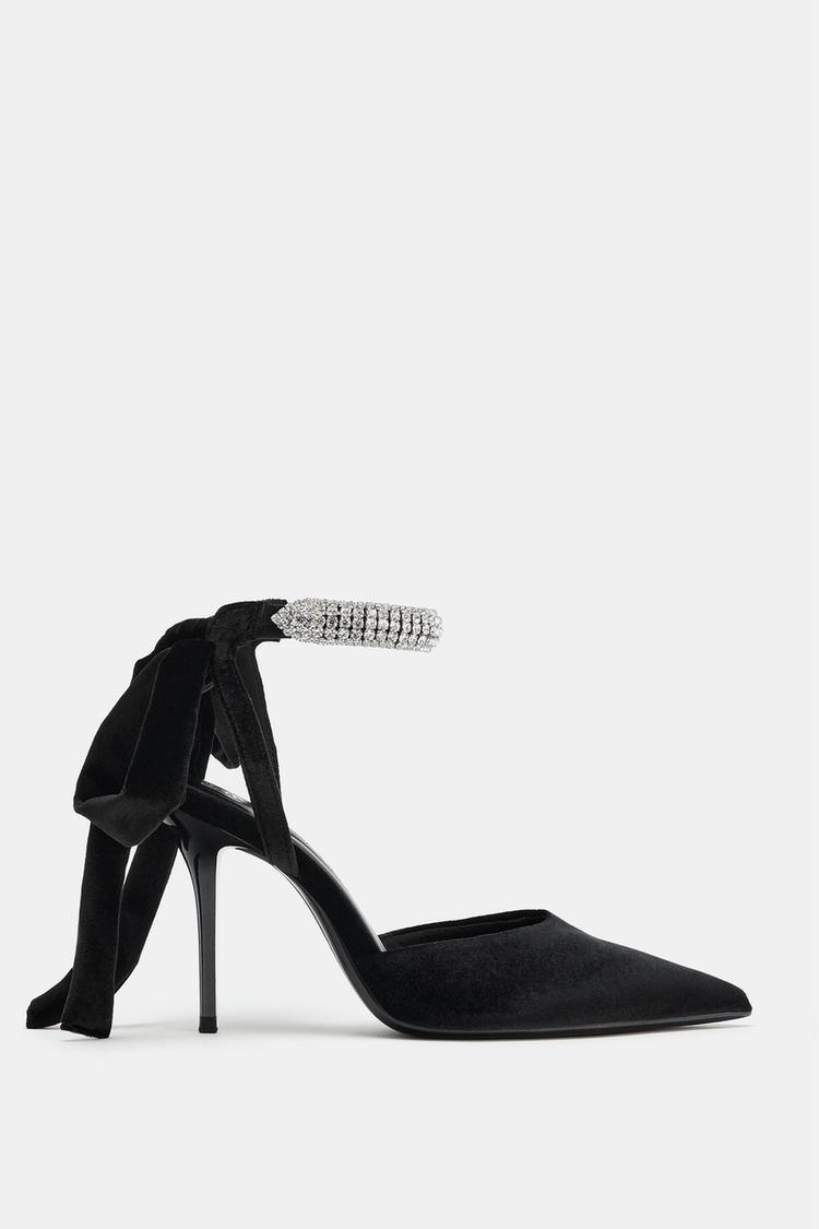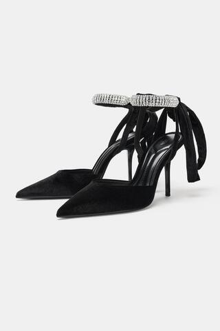 ZARA ТУФЛИ-МЮЛИ СО СТРАЗАМИ, ЧЕРНЫЙ