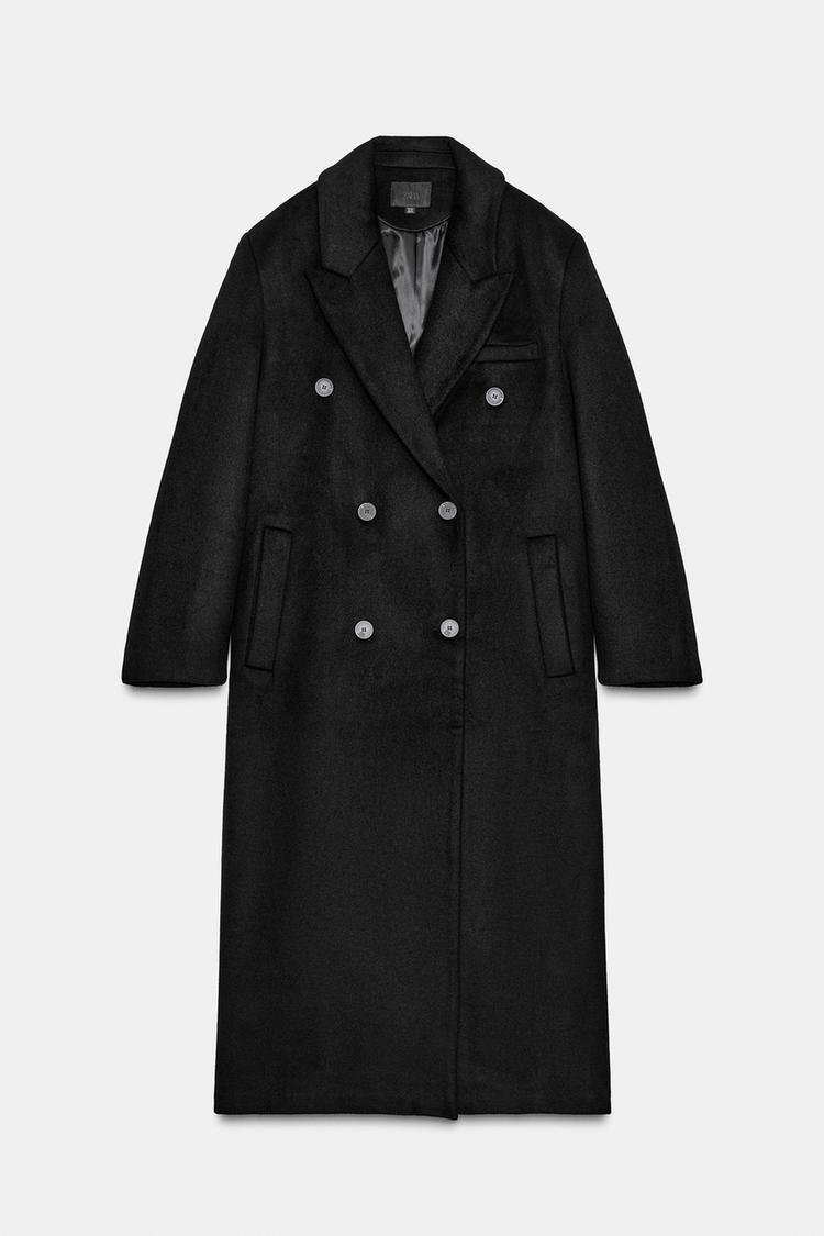 ZARA УДЛИНЕННОЕ ПАЛЬТО ИЗ СМЕСОВОЙ ШЕРСТИ, ЧЕРНЫЙ
