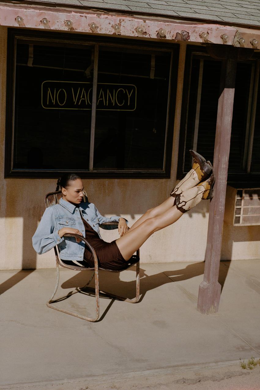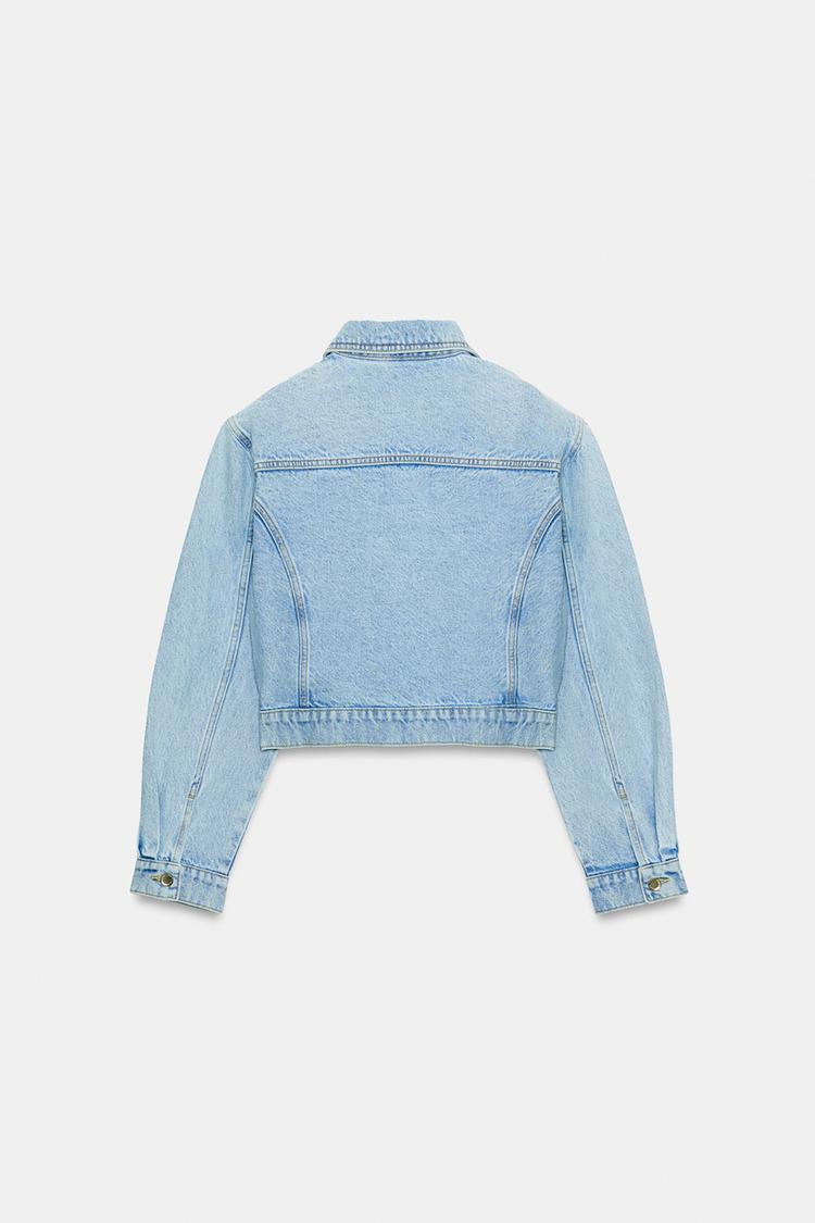 ZARA УКОРОЧЕННАЯ ДЖИНСОВАЯ КУРТКА Z1975 С ПОДПЛЕЧНИКАМИ, ВЫЦВЕТШИЙ СИНИЙ