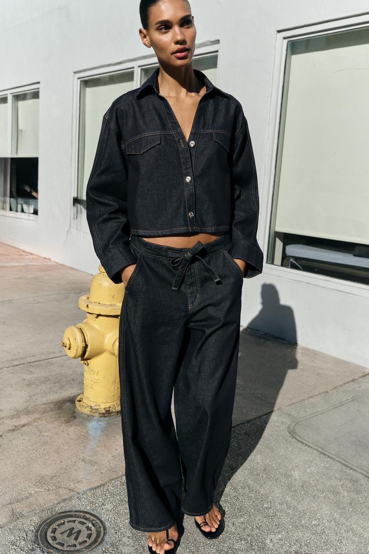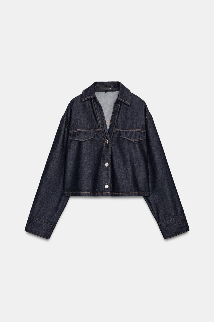ZARA УКОРОЧЕННАЯ ДЖИНСОВАЯ РУБАШКА Z1975, СИНИЙ