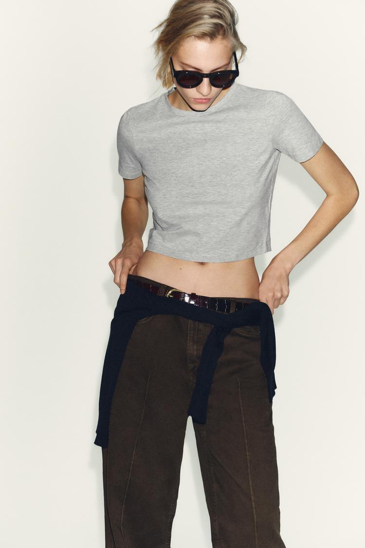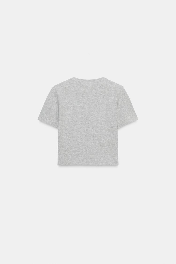 ZARA УКОРОЧЕННАЯ ФУТБОЛКА ИЗ ЭЛАСТИЧНОЙ ТКАНИ, СЕРЫЙ МЕЛАНЖ