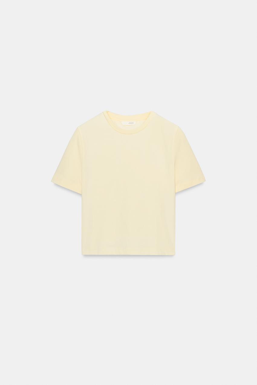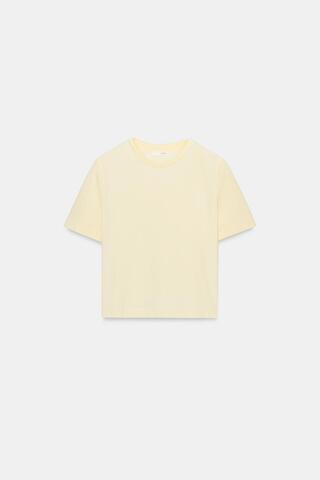 ZARA УКОРОЧЕННАЯ ФУТБОЛКА ИЗ ЭЛАСТИЧНОЙ ТКАНИ, СВЕТЛО-ЖЕЛТЫЙ