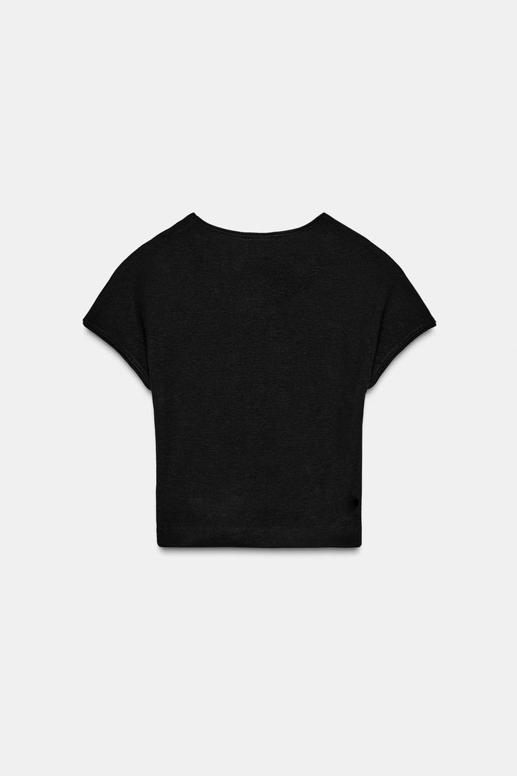 ZARA УКОРОЧЕННАЯ ФУТБОЛКА С КОРОТКИМИ РУКАВАМИ, ЧЕРНЫЙ