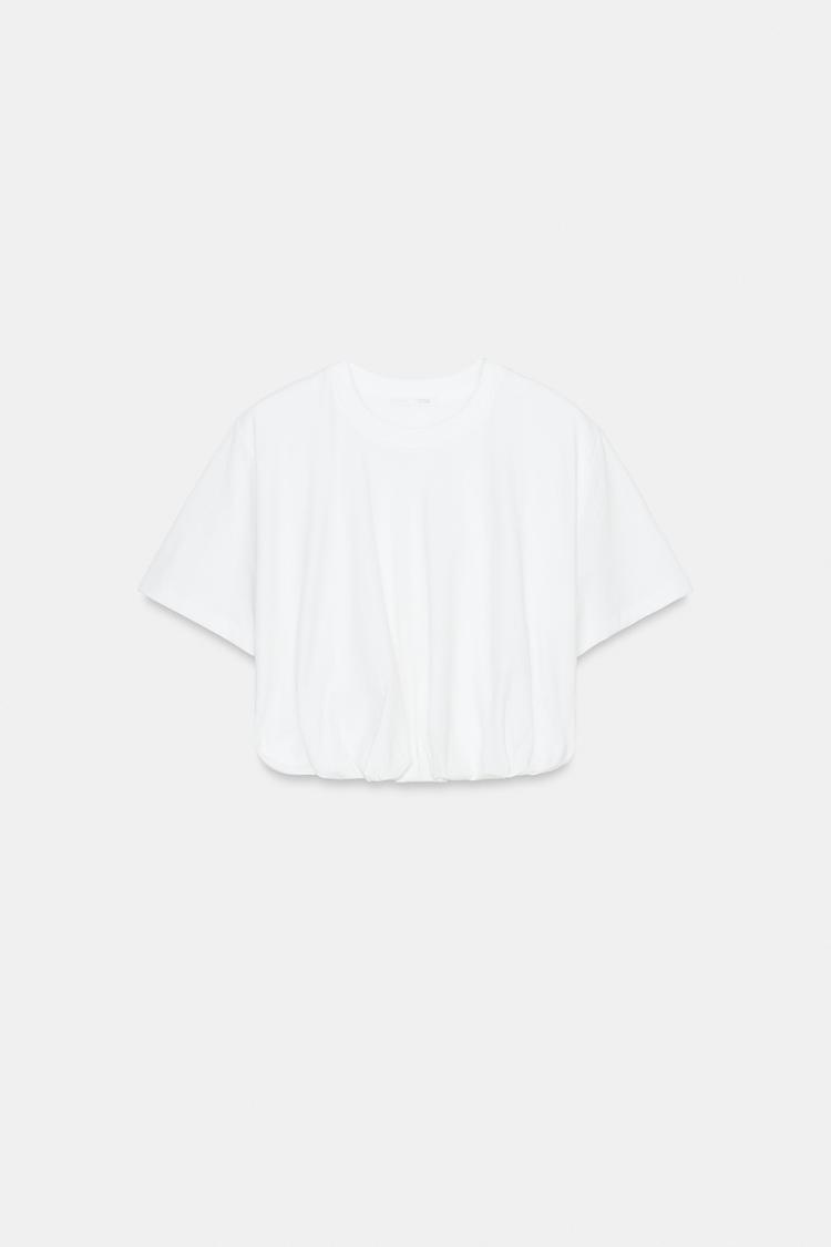 ZARA УКОРОЧЕННАЯ ФУТБОЛКА С ОБЪЕМНЫМ НИЗОМ, БЕЛЫЙ
