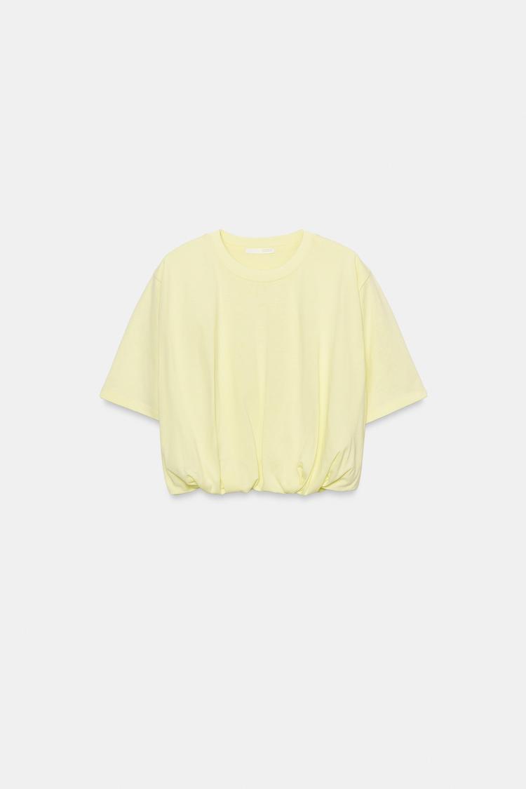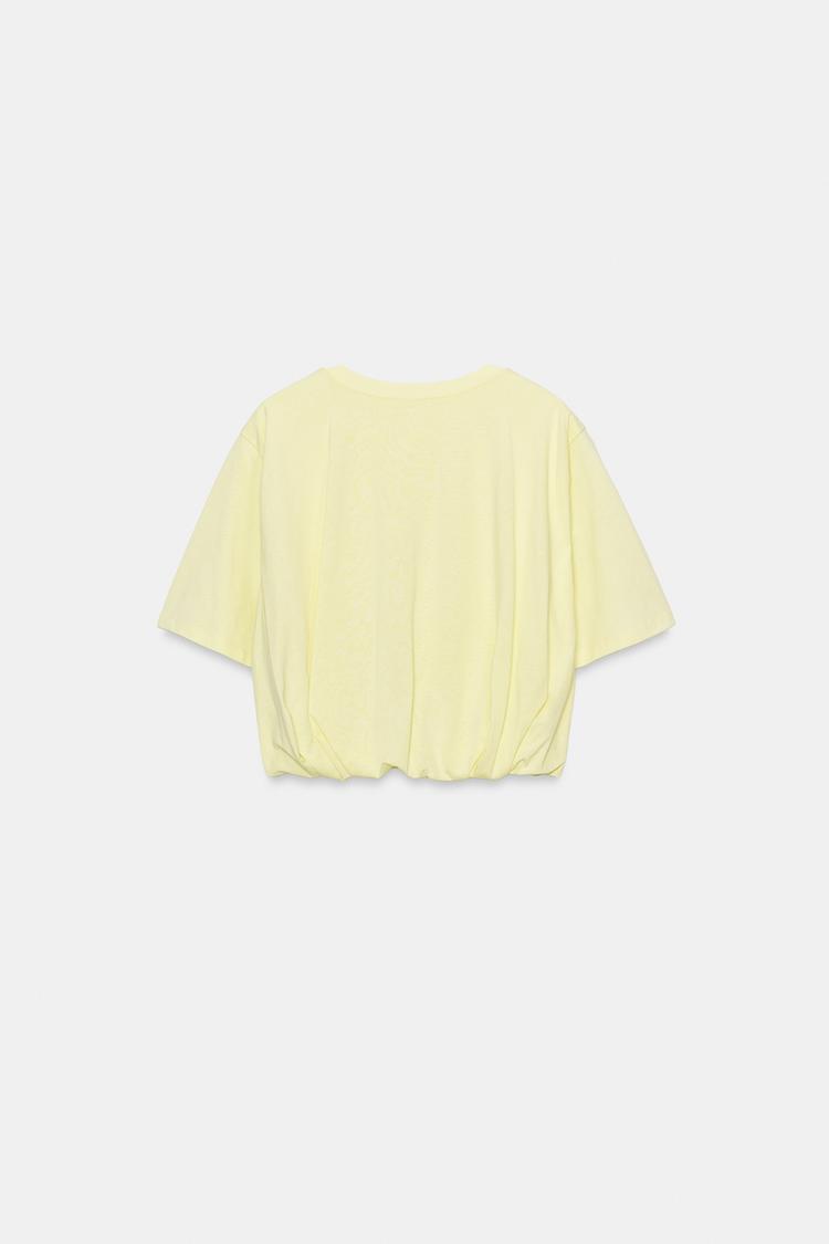ZARA УКОРОЧЕННАЯ ФУТБОЛКА С ОБЪЕМНЫМ НИЗОМ, СВЕТЛО-ЖЕЛТЫЙ