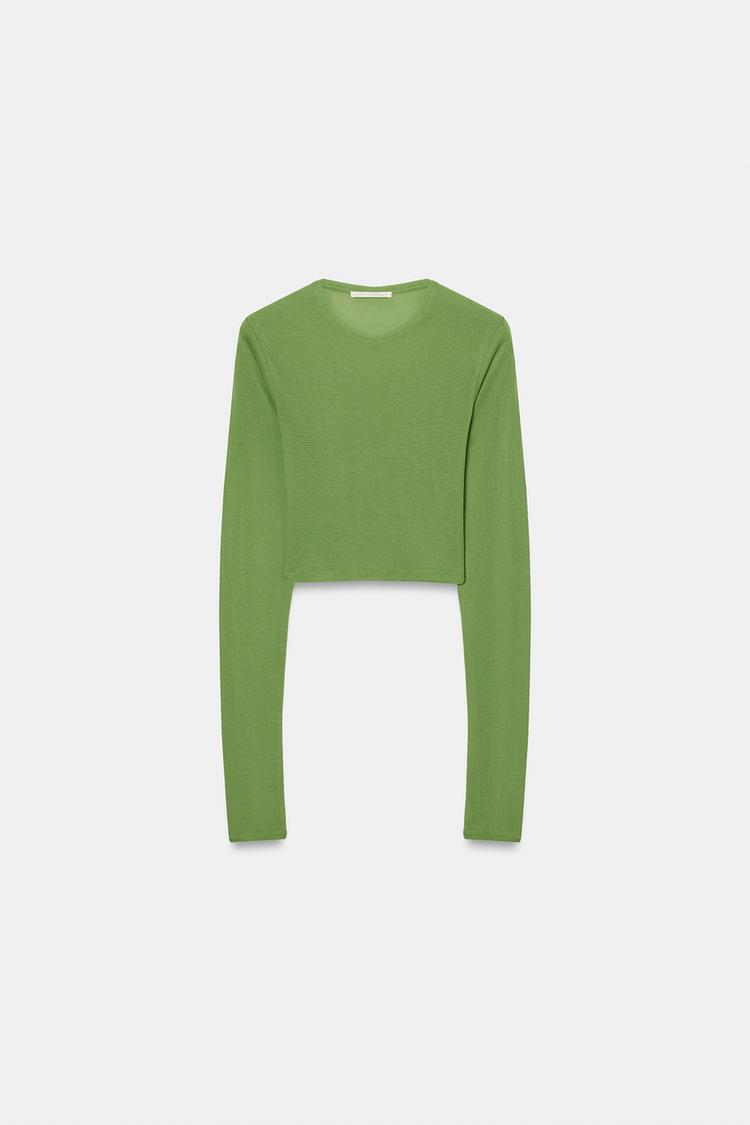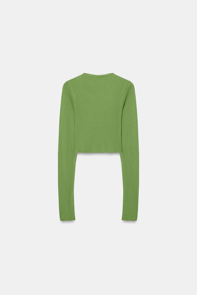 ZARA УКОРОЧЕННАЯ ФУТБОЛКА SUPIMA®, ЗЕЛЕНЫЙ