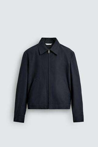 ZARA УКОРОЧЕННАЯ КУРТКА ИЗ ХЛОПКА, МОРСКОЙ СИНИЙ