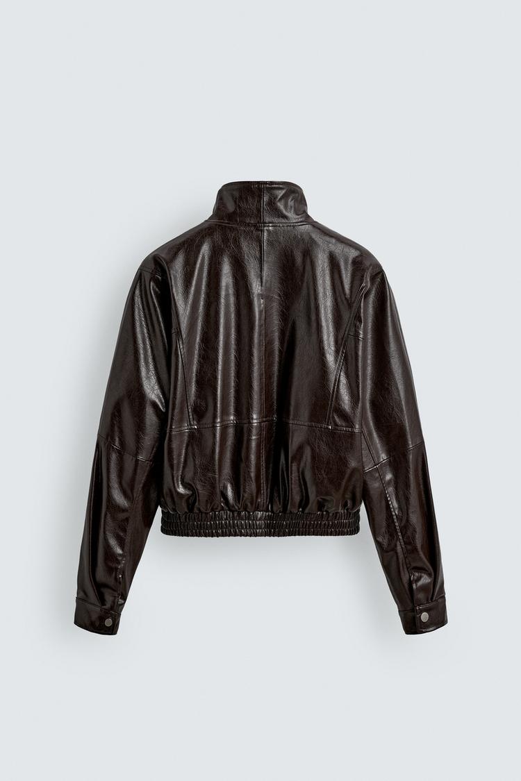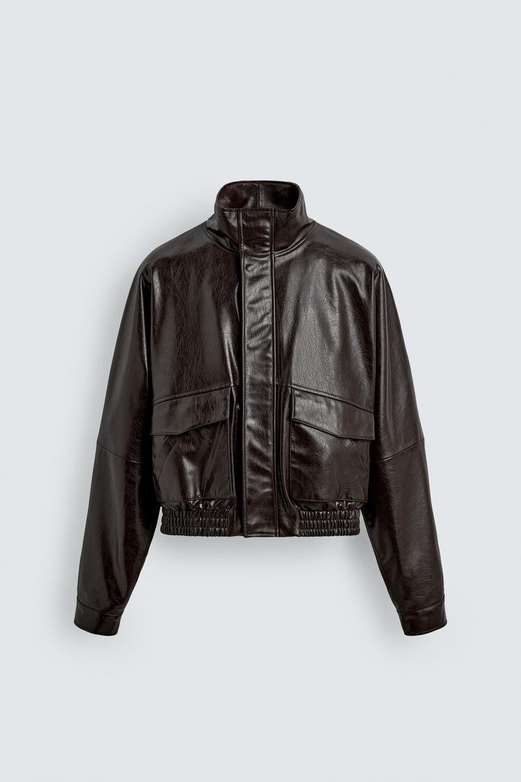 ZARA УКОРОЧЕННАЯ КУРТКА ИЗ ИСКУССТВЕННОЙ КОЖИ, КОРИЧНЕВЫЙ