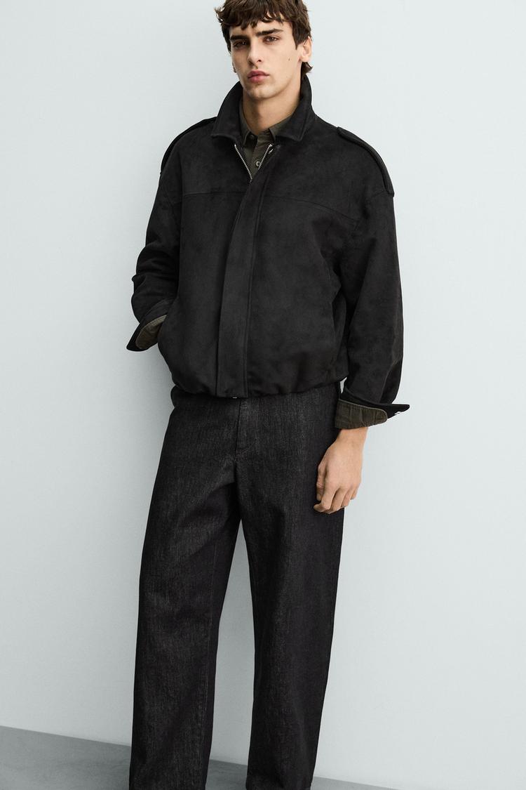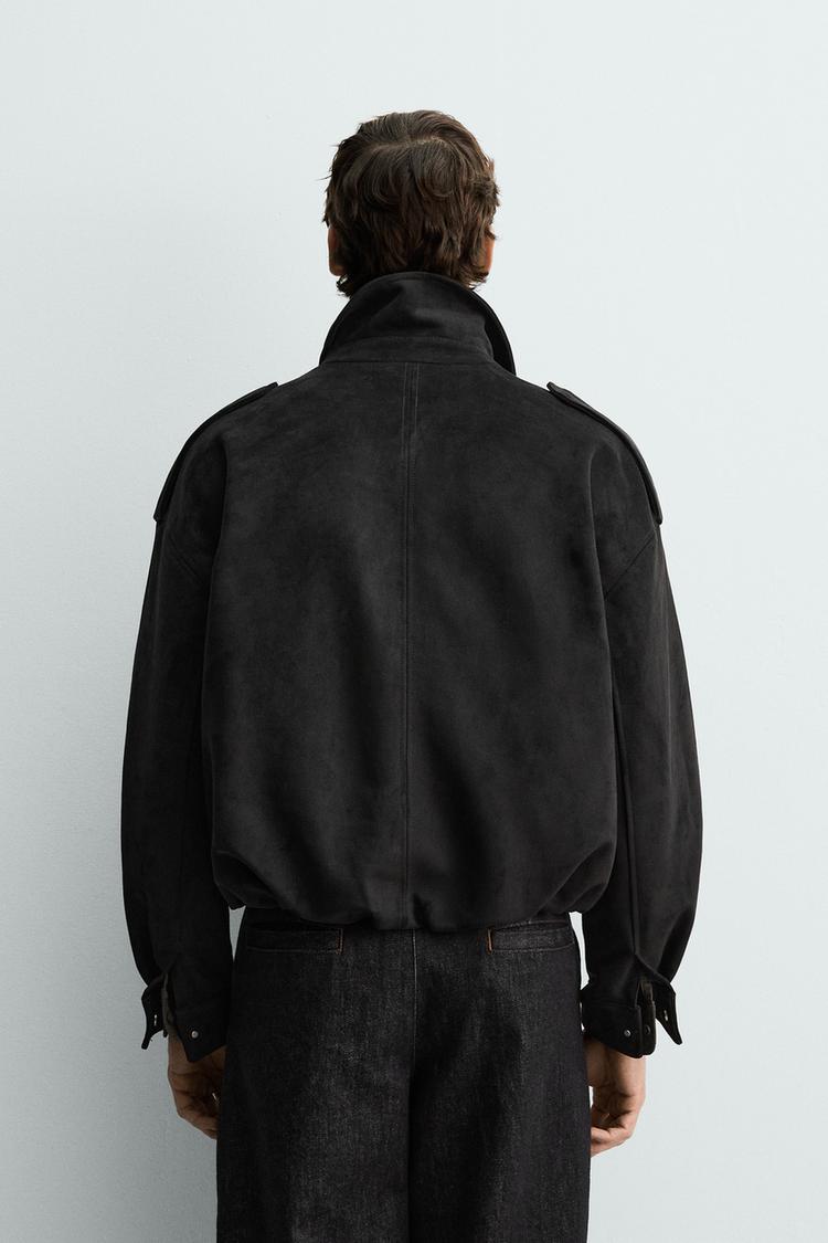 ZARA УКОРОЧЕННАЯ КУРТКА ИЗ ИСКУССТВЕННОЙ ЗАМШИ, ЧЕРНЫЙ