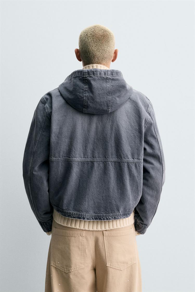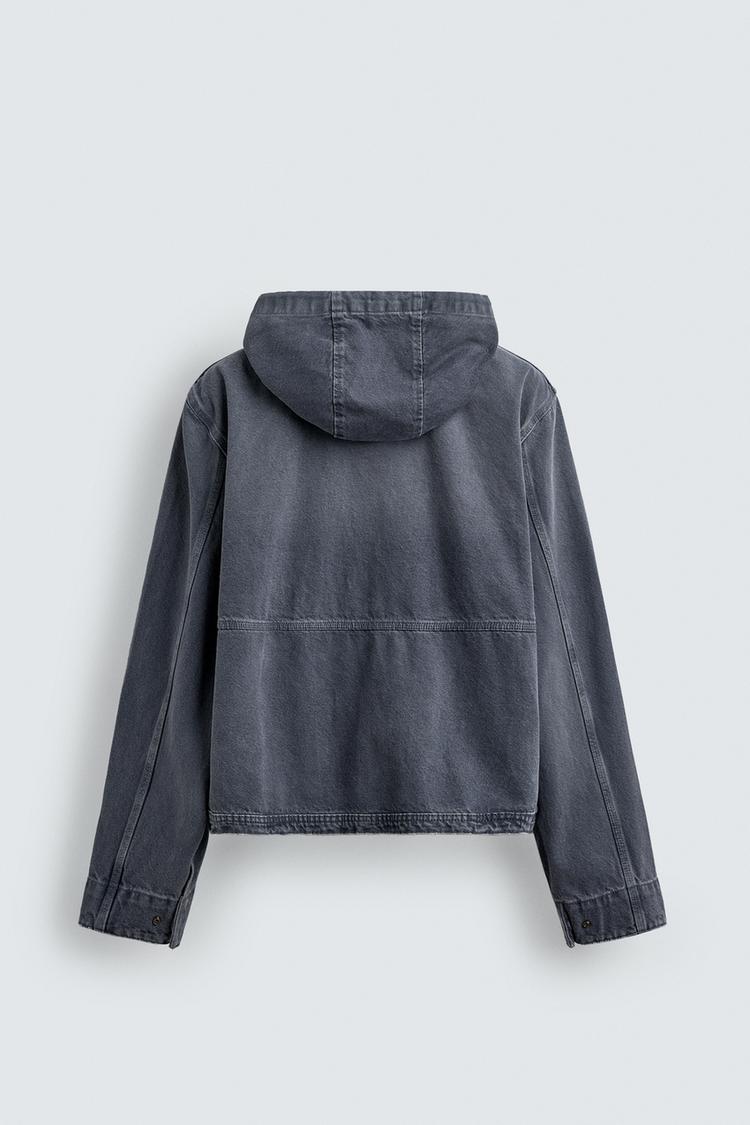 ZARA УКОРОЧЕННАЯ КУРТКА С КАПЮШОНОМ И ЭФФЕКТОМ ПОТЕРТОСТИ, ЛИНЯЛЫЙ СИНИЙ