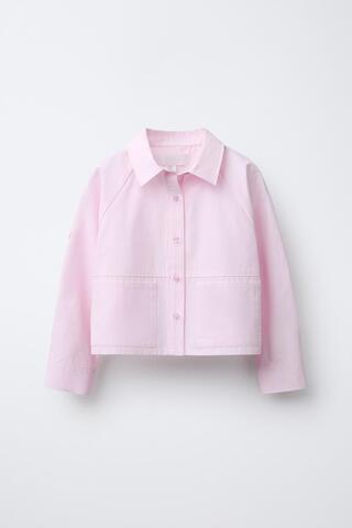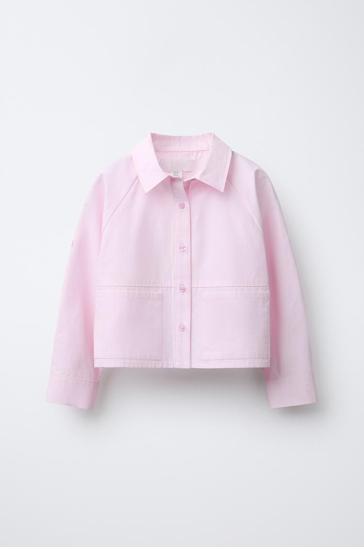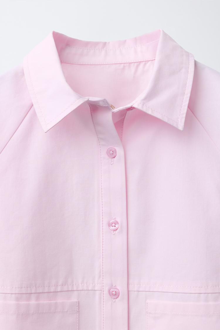 ZARA УКОРОЧЕННАЯ РУБАШКА С КАРМАНАМИ, РОЗОВЫЙ