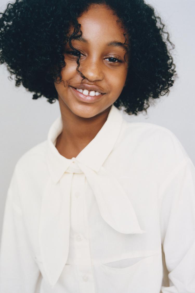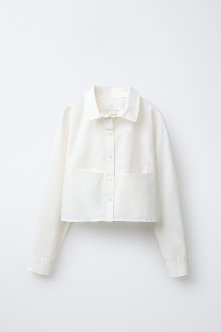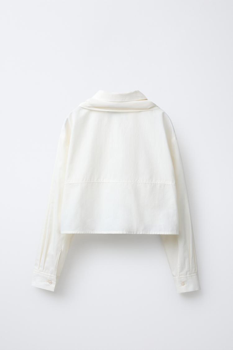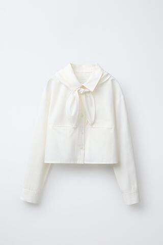 ZARA УКОРОЧЕННАЯ РУБАШКА СО СЪЕМНЫМ ПЛАТКОМ, ЖЕЛТОВАТО-БЕЛЫЙ