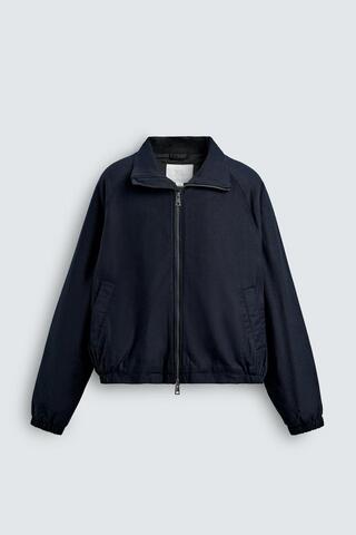 Укороченная куртка из хлопка со слегка стеганой подкладкой. Воротник-стойка, длинные рукава. Прорезные карманы на груди, внутренний карман. Эластичные края. Застежка-молния.