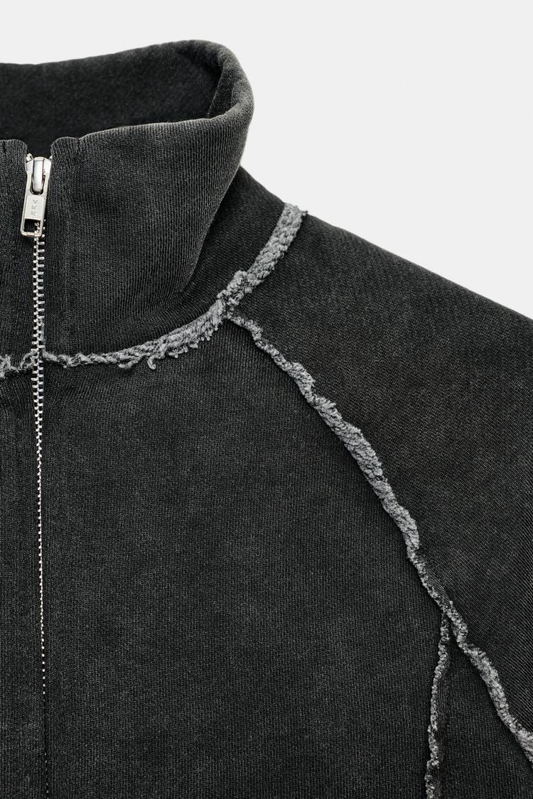 Укороченная толстовка из смесового хлопка. Высокий воротник, длинные рукава. Эффект потертости. Контрастные декоративные швы. Застежка-молния спереди.