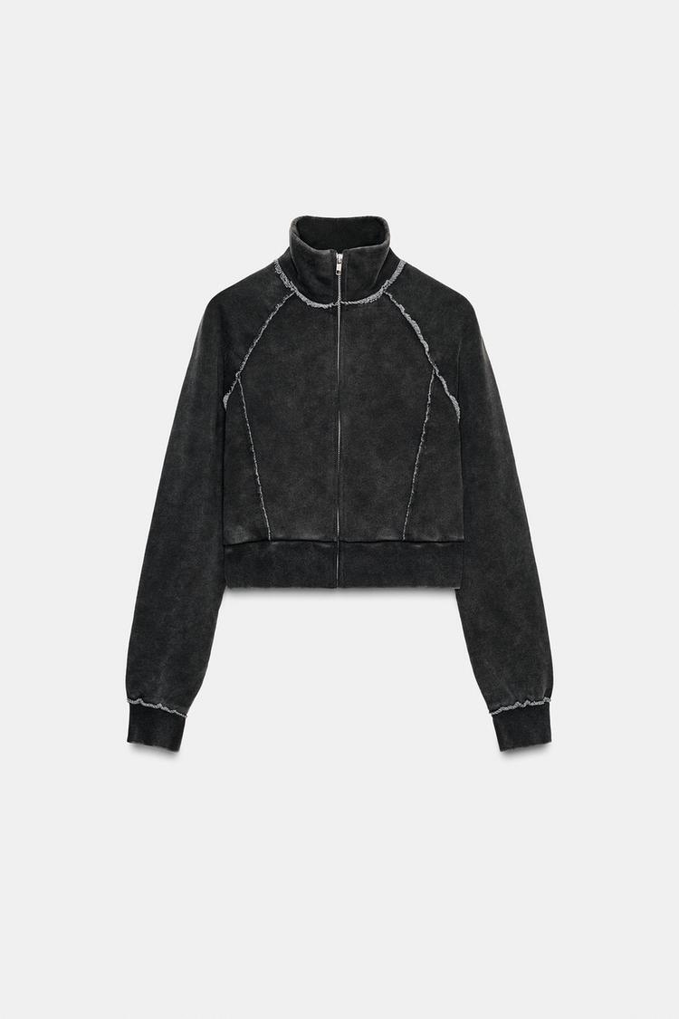 ZARA УКОРОЧЕННАЯ ТОЛСТОВКА С ДЕКОРАТИВНЫМИ ШВАМИ, АНТРАЦИТОВО-СЕРЫЙ