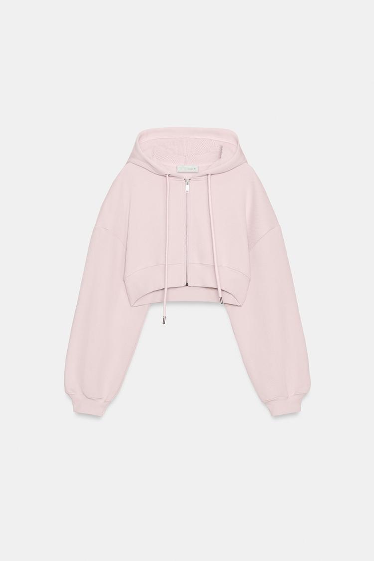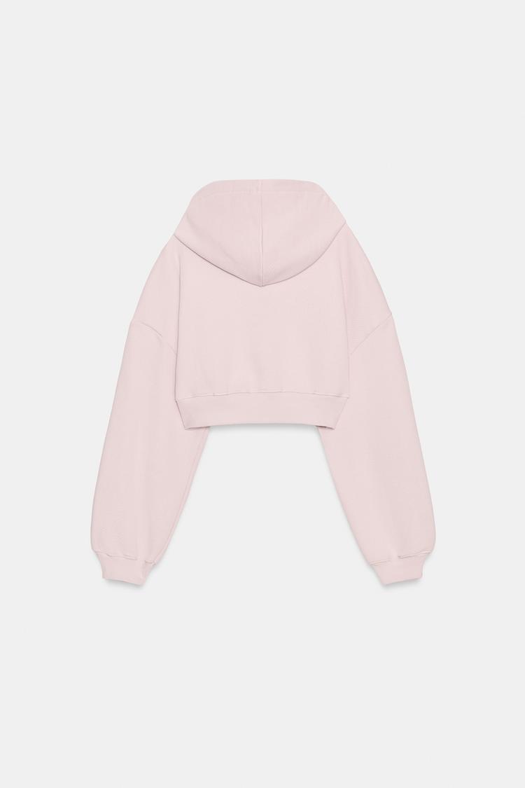 ZARA УКОРОЧЕННАЯ ТОЛСТОВКА С КАПЮШОНОМ, ПЫЛЬНЫЙ РОЗОВЫЙ