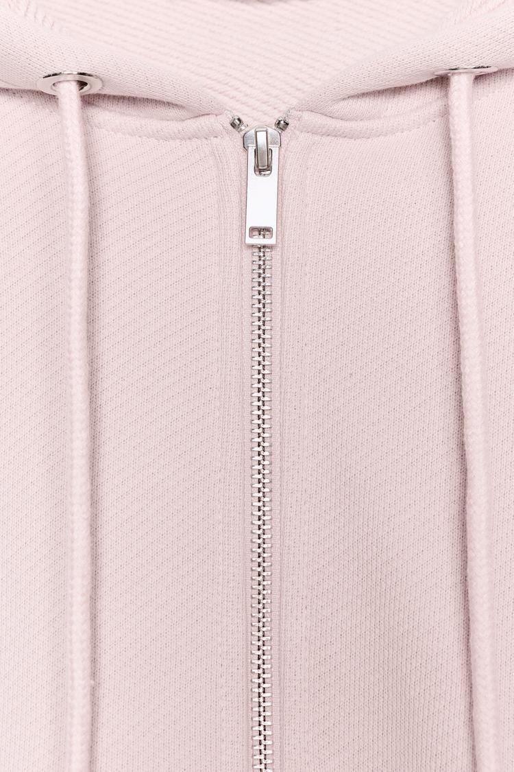 Укороченная толстовка из хлопка. Круглый вырез и регулируемый капюшон на шнурке. Детали в рубчик в тон. Застежка-молния спереди.