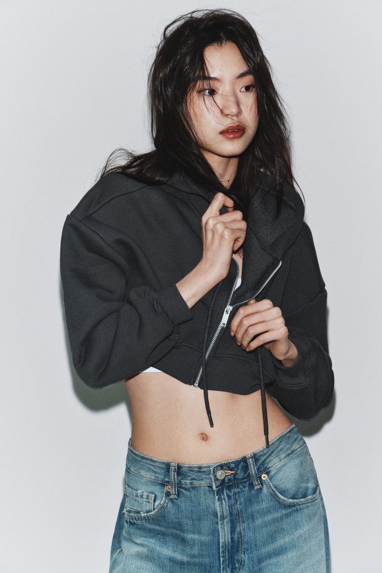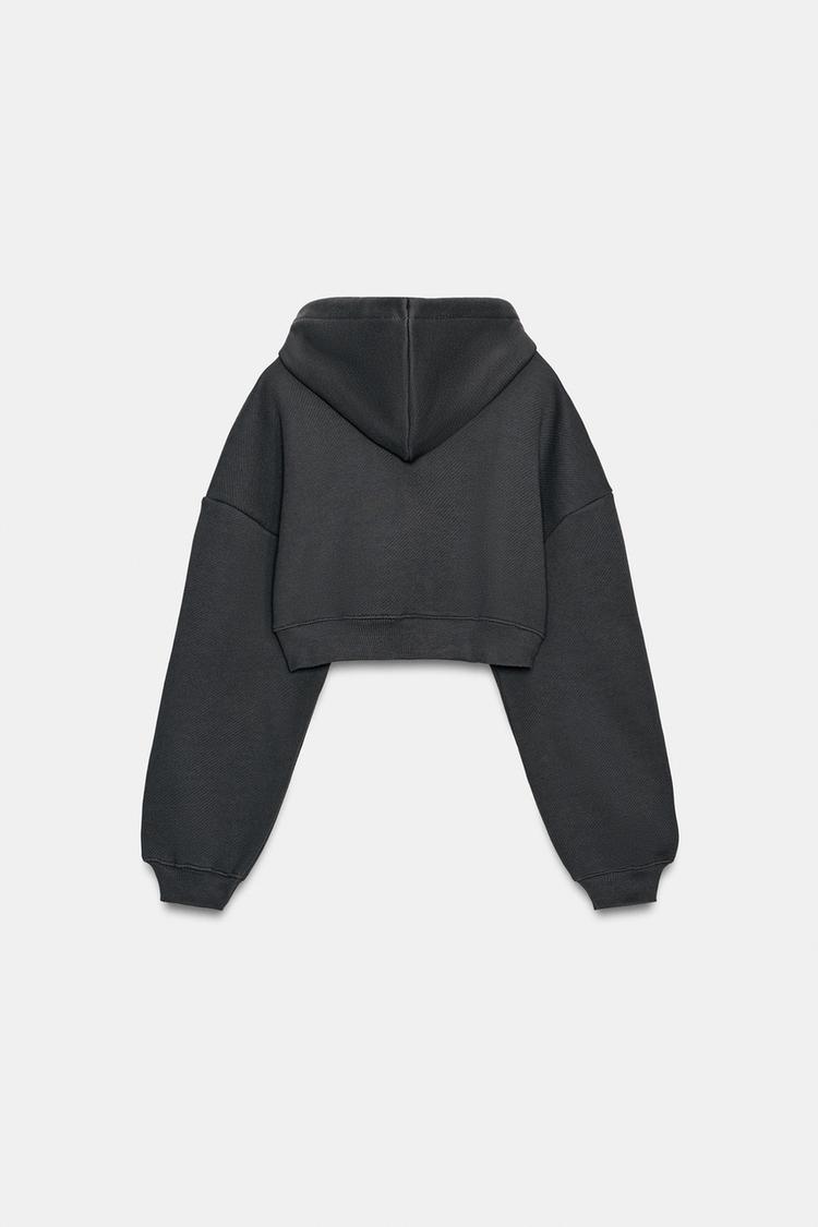 ZARA УКОРОЧЕННАЯ ТОЛСТОВКА С КАПЮШОНОМ, СЕРЫЙ
