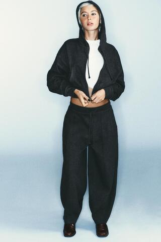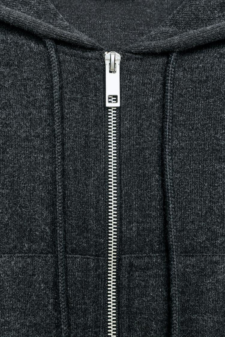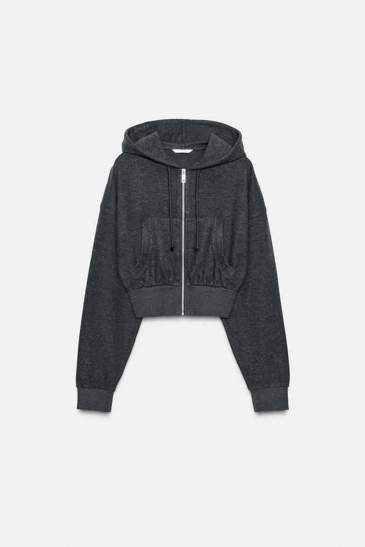 ZARA УКОРОЧЕННОЕ ХУДИ С КАПЮШОНОМ, ТЕМНО-СЕРЫЙ