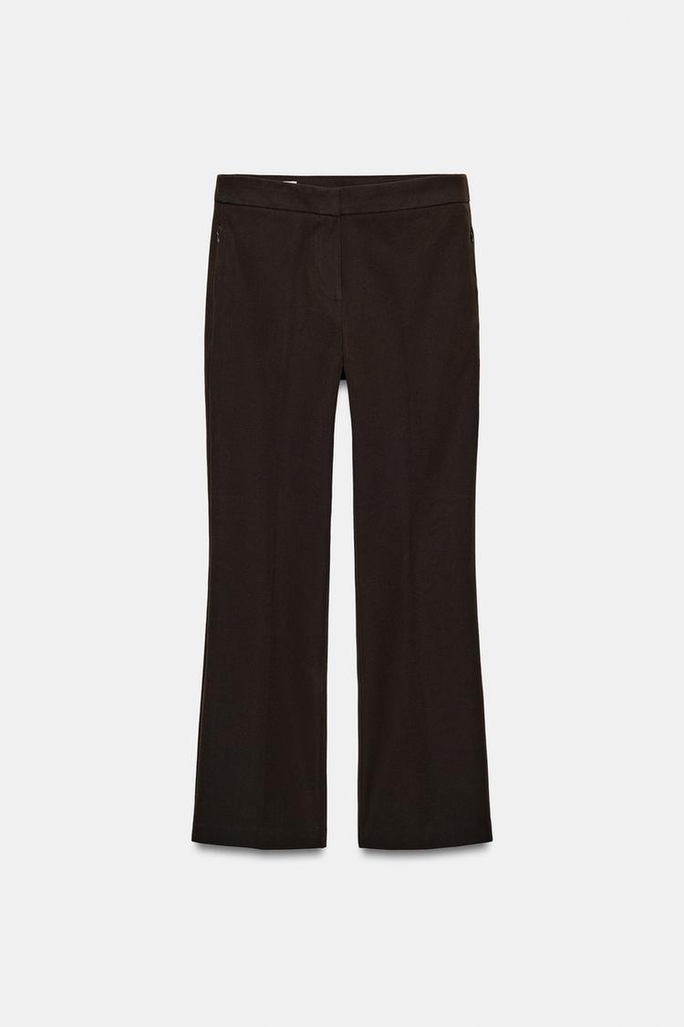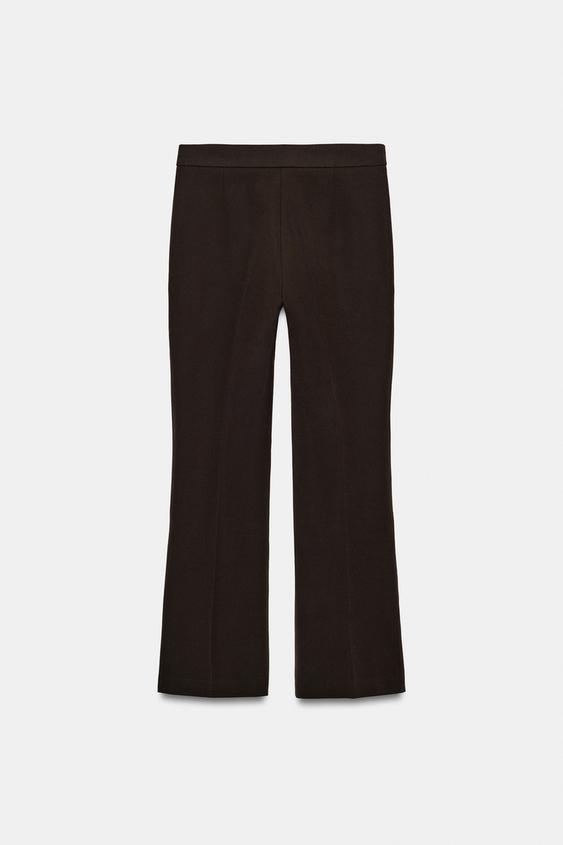 ZARA УКОРОЧЕННЫЕ БРЮКИ MINI FLARE, КОРИЧНЕВЫЙ