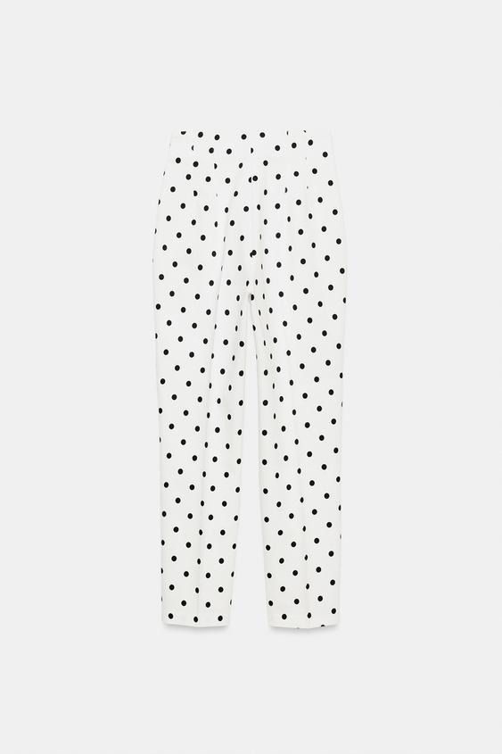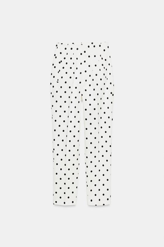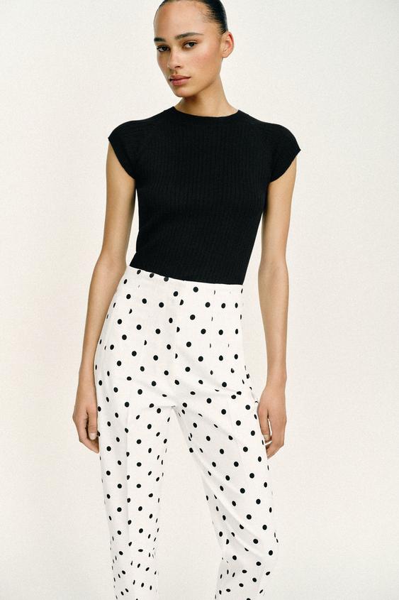 ZARA УКОРОЧЕННЫЕ БРЮКИ В ГОРОШЕК С ВЫСОКОЙ ПОСАДКОЙ, БЕЛЫЙ/ЧЕРНЫЙ