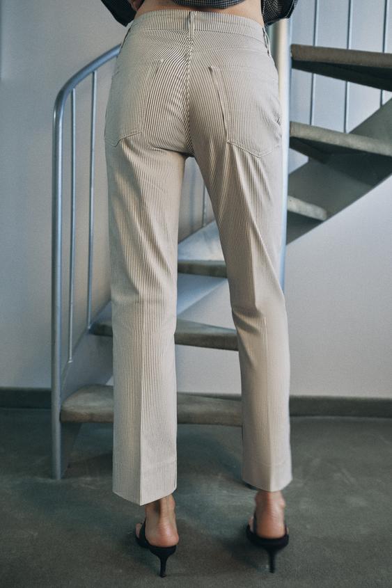 ZARA УКОРОЧЕННЫЕ ДЖИНСЫ BOOTCUT-FLARE СО СРЕДНЕЙ ПОСАДКОЙ — ZW COLLECTION, ЭКРЮ МЕЛАНЖ