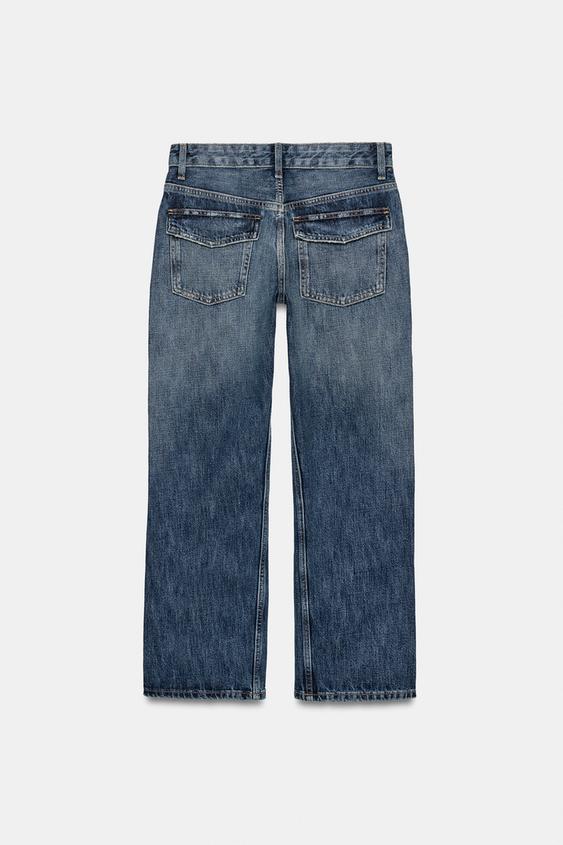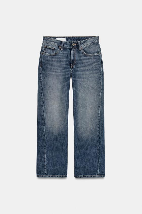ZARA УКОРОЧЕННЫЕ ДЖИНСЫ TRF СО СРЕДНЕЙ ПОСАДКОЙ, МОРСКОЙ СИНИЙ