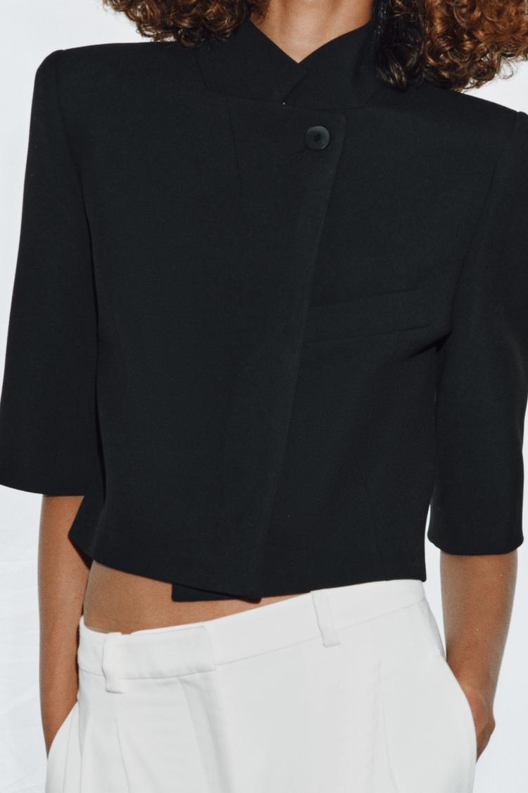 ZARA УКОРОЧЕННЫЙ БЛЕЙЗЕР С КОРОТКИМИ РУКАВАМИ — ZW COLLECTION, ЧЕРНЫЙ