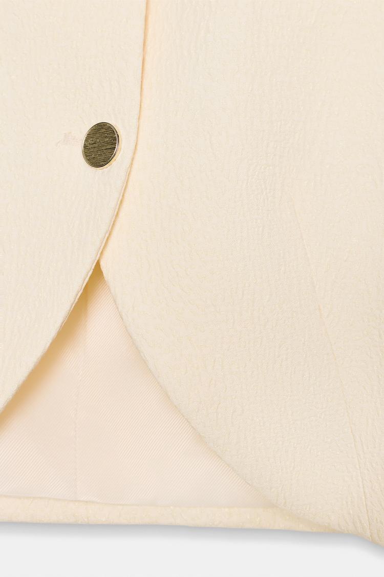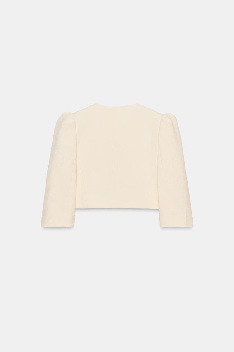ZARA УКОРОЧЕННЫЙ БЛЕЙЗЕР С ОБЪЕМНЫМИ РУКАВАМИ, ЖЕЛТОВАТО-БЕЛЫЙ