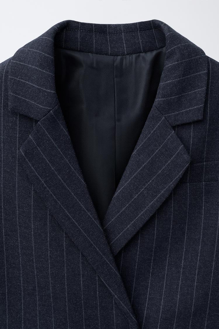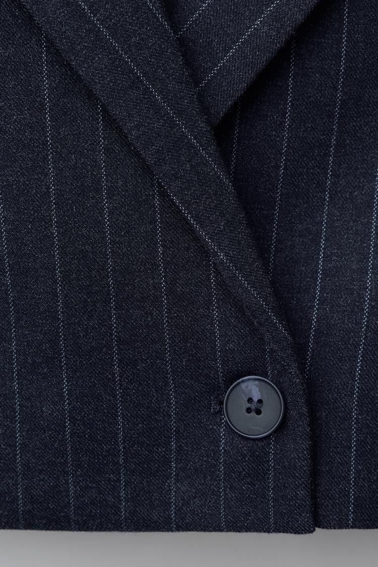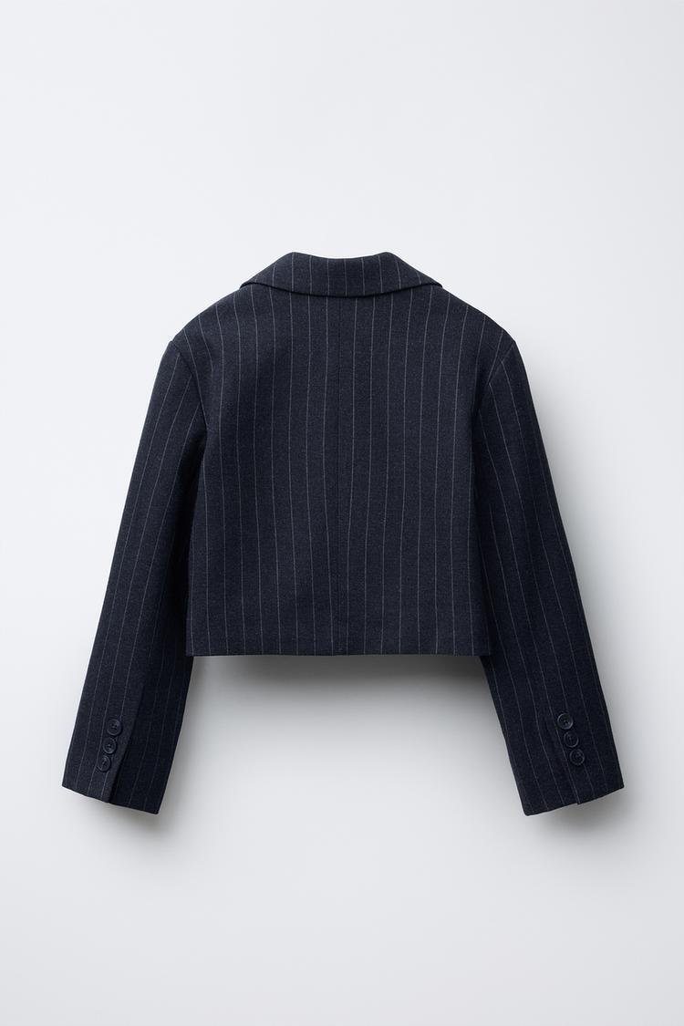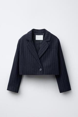 ZARA УКОРОЧЕННЫЙ БЛЕЙЗЕР В ТОНКУЮ ПОЛОСКУ, МОРСКОЙ СИНИЙ