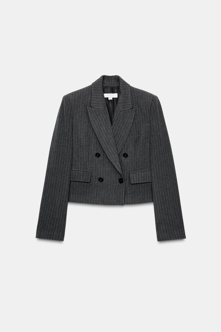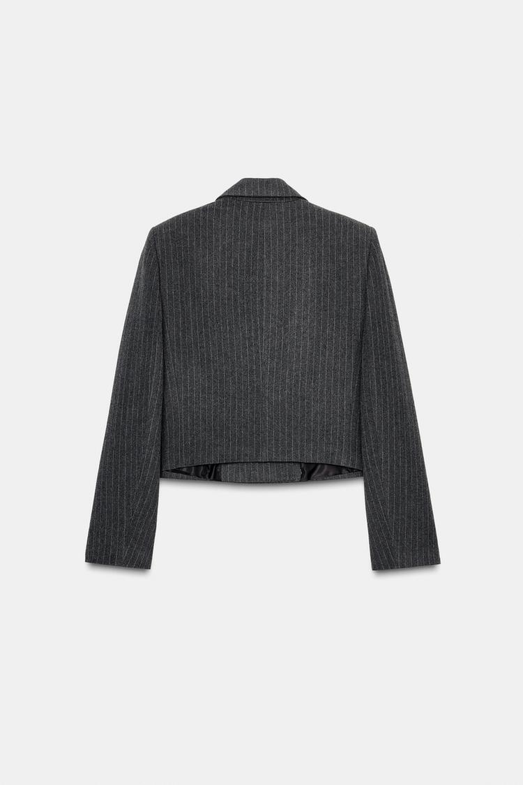 ZARA УКОРОЧЕННЫЙ ДВУБОРТНЫЙ БЛЕЙЗЕР В ТОНКУЮ ПОЛОСКУ, ПОЛОСКИ