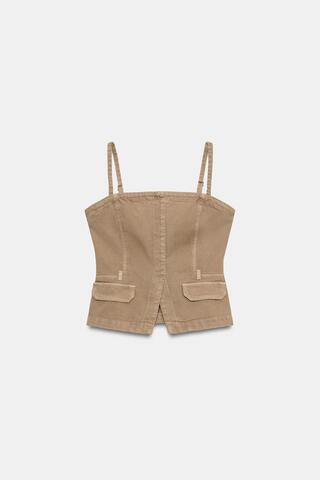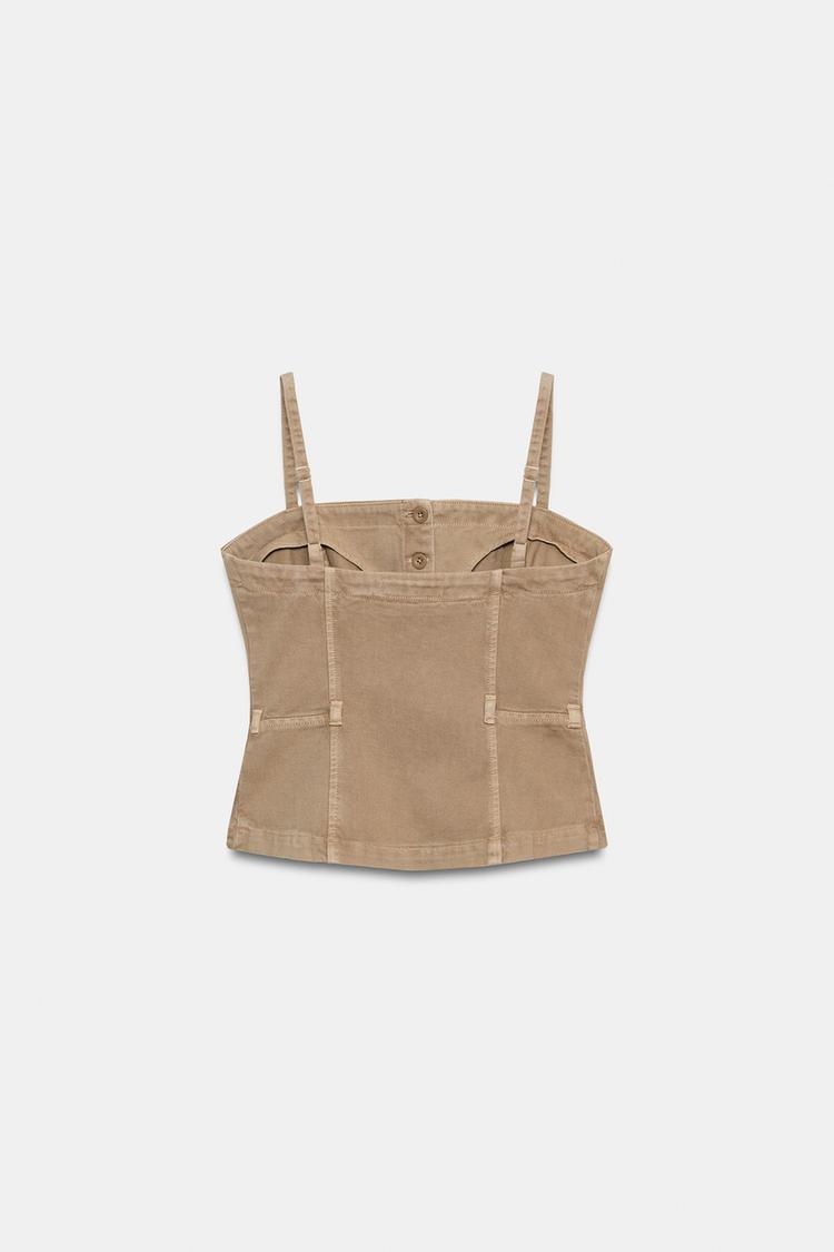 ZARA УКОРОЧЕННЫЙ ДЖИНСОВЫЙ ТОП Z1975, СВЕТЛЫЙ ЖЕЛТО-КОРИЧНЕВЫЙ