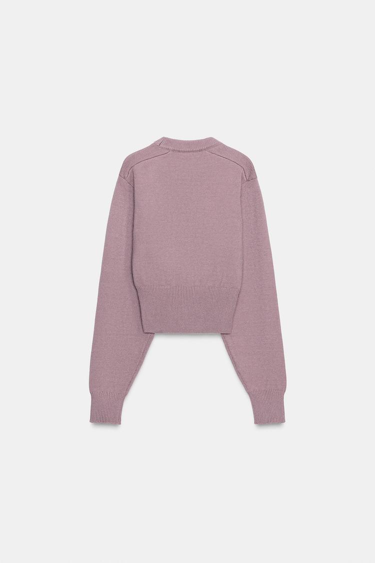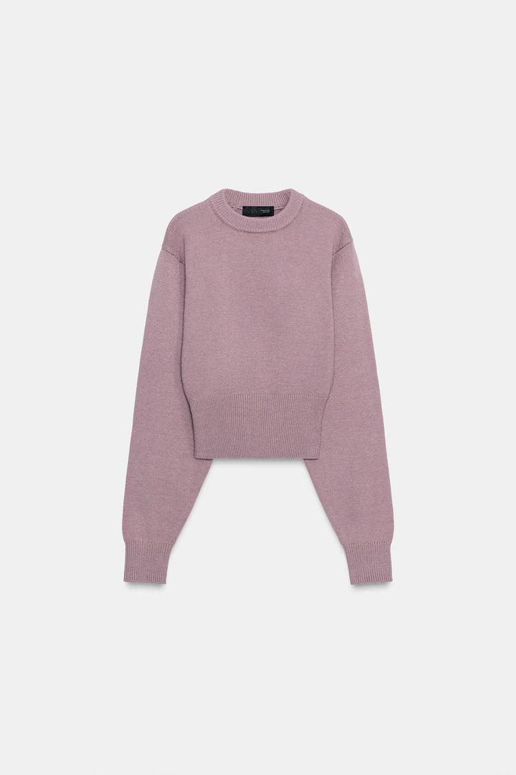 ZARA УКОРОЧЕННЫЙ ОДНОТОННЫЙ ДЖЕМПЕР, СИРЕНЕВЫЙ