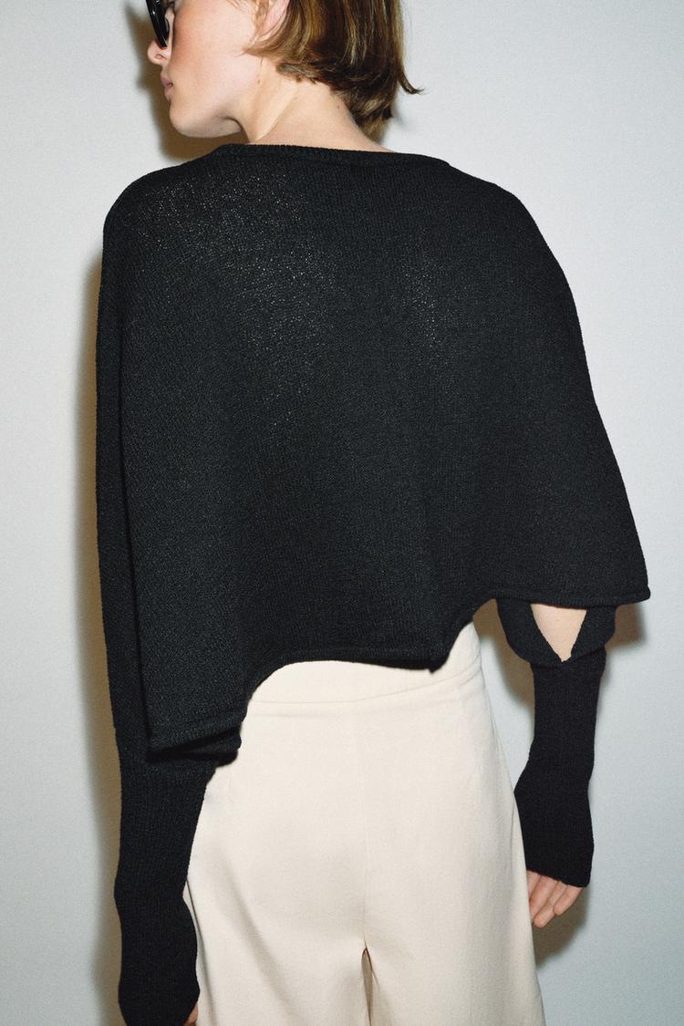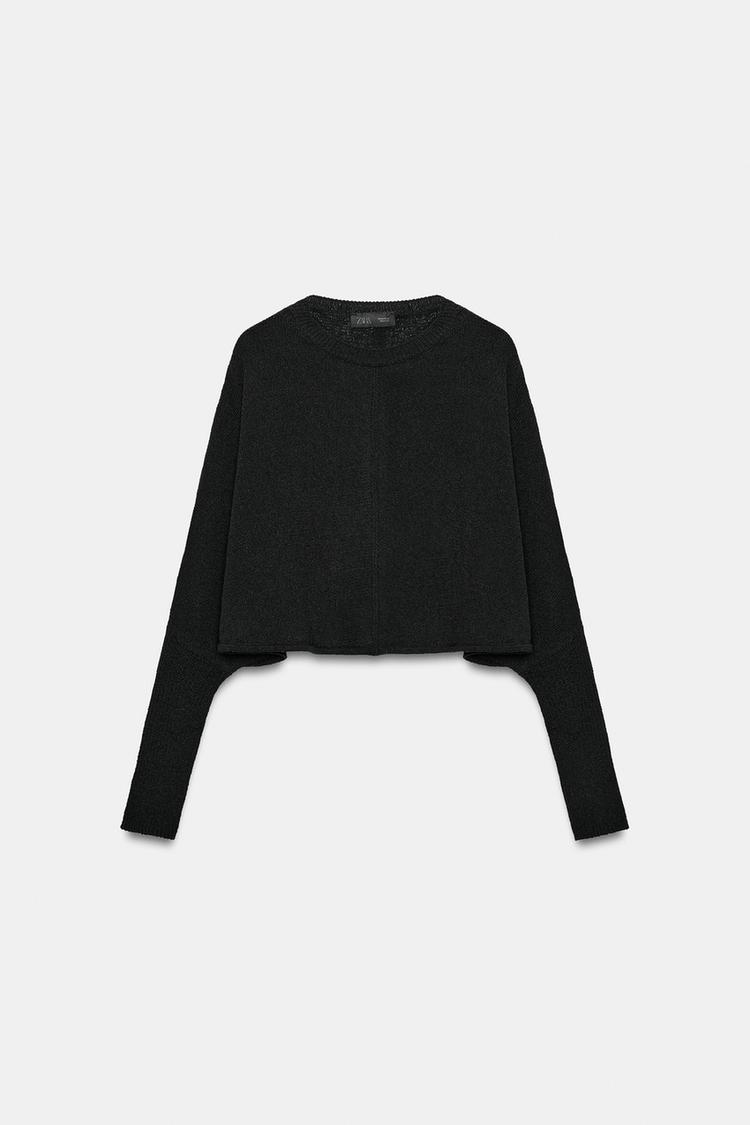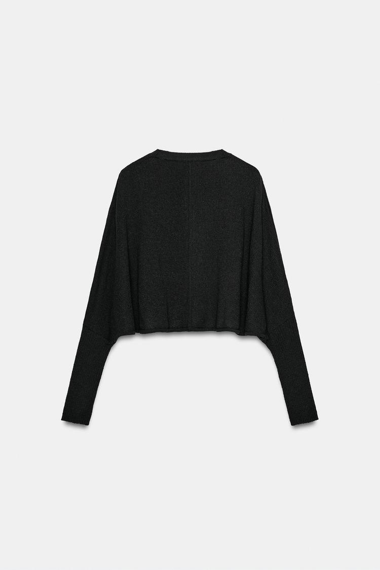 ZARA УКОРОЧЕННЫЙ СВИТЕР С РУКАВАМИ «ЛЕТУЧАЯ МЫШЬ», ЧЕРНЫЙ