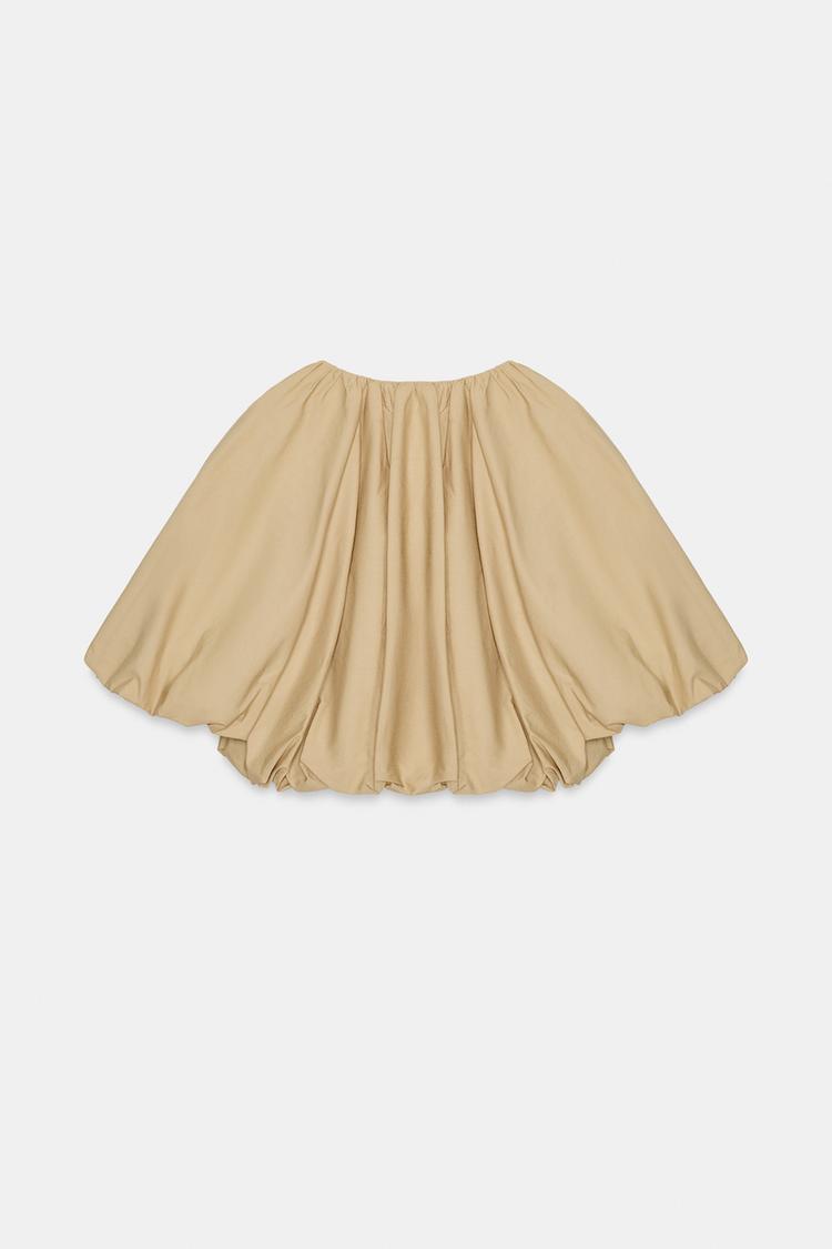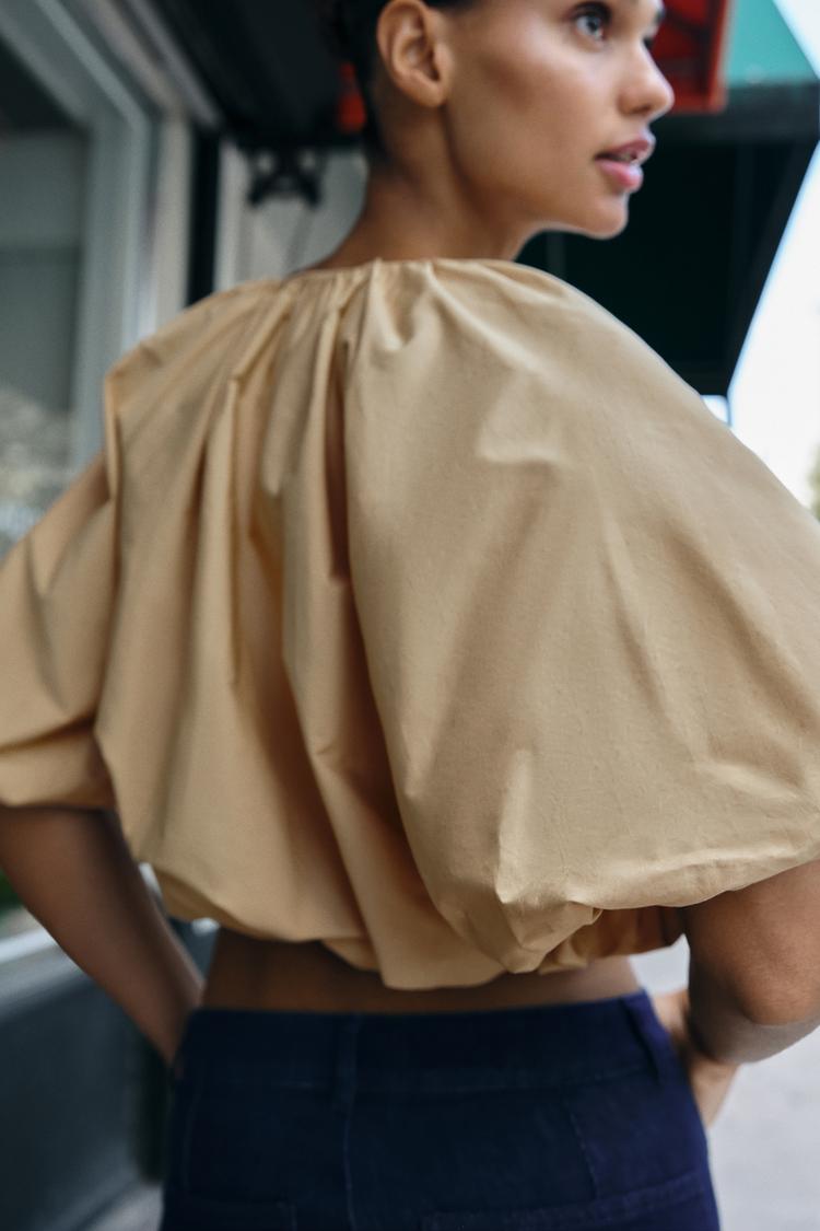 ZARA УКОРОЧЕННЫЙ ТОП-БАЛЛОН ИЗ ПОПЛИНА, РЫЖЕВАТО-КОРИЧНЕВЫЙ
