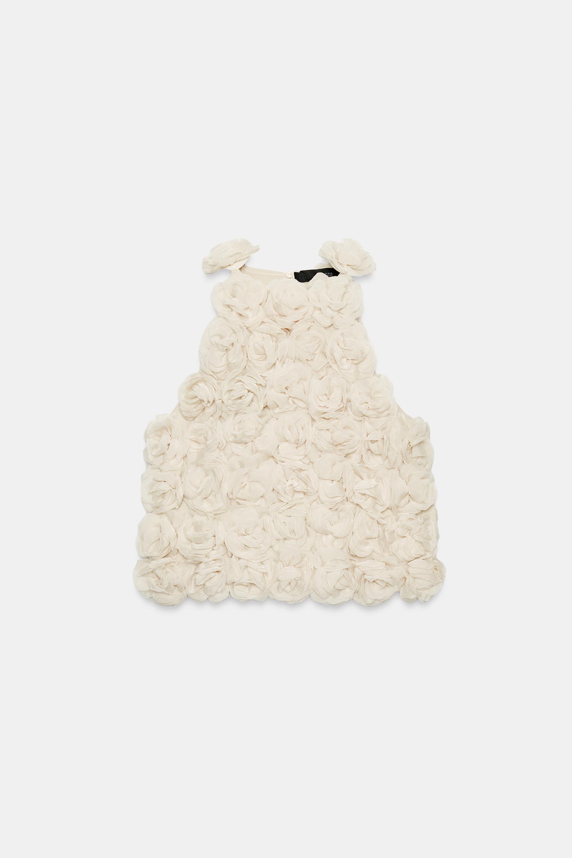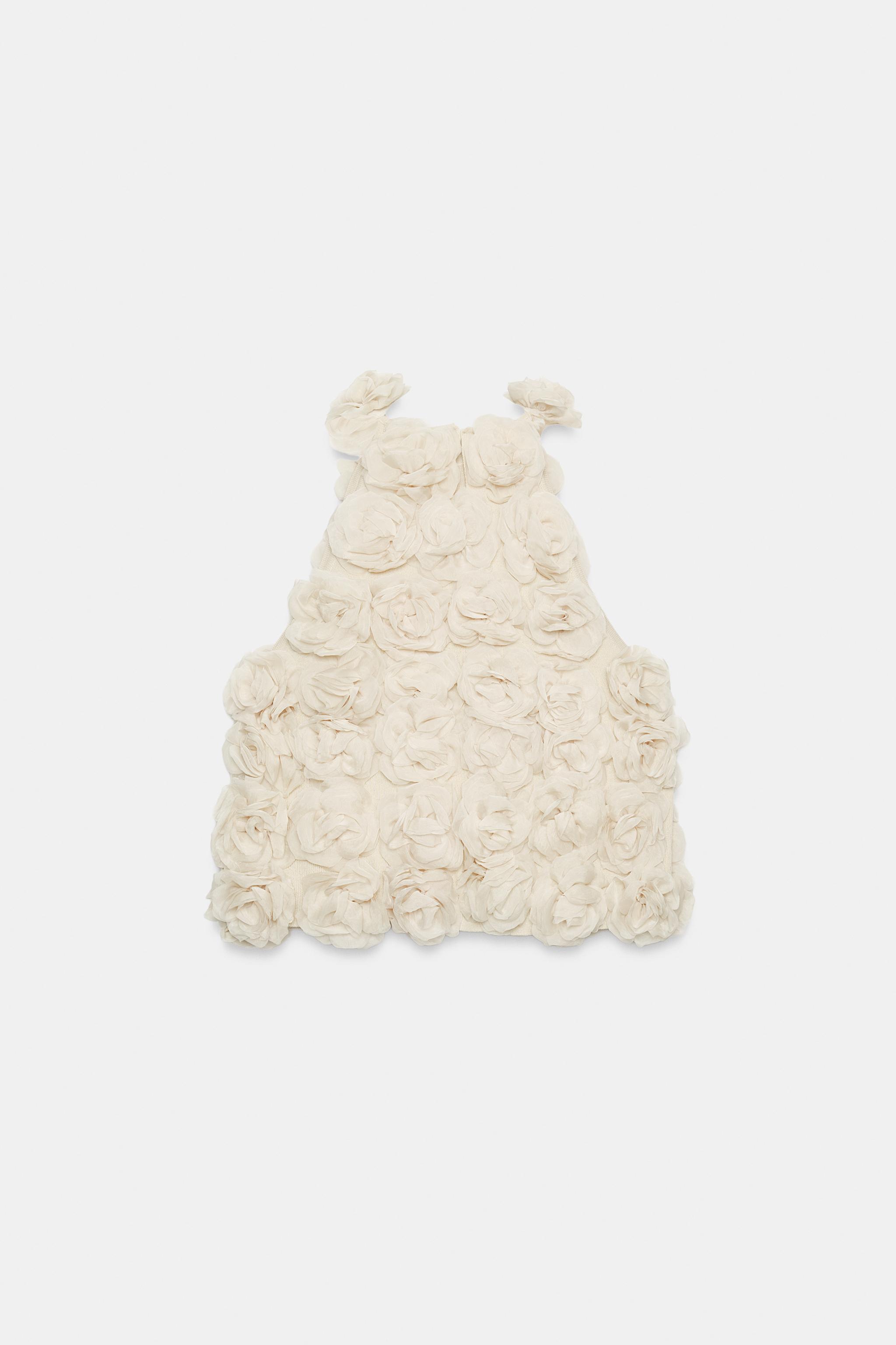 ZARA УКОРОЧЕННЫЙ ТОП ХАЛТЕР С ЦВЕТОЧНЫМ УЗОРОМ, БЕЖЕВЫЙ