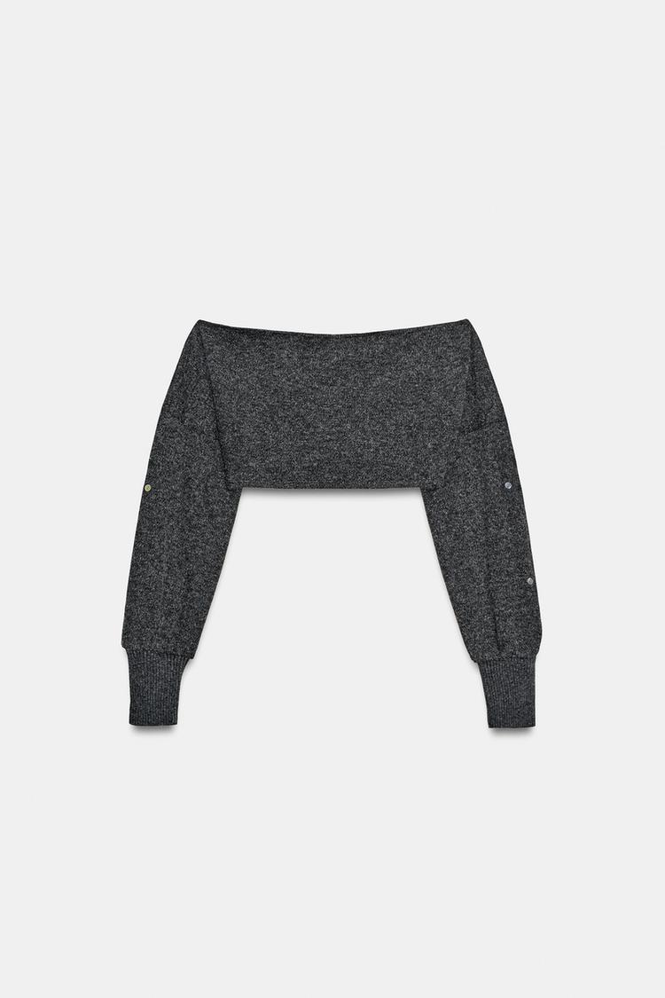 ZARA УКОРОЧЕННЫЙ ТОП ИЗ МЯГКОЙ ТКАНИ С ПУГОВИЦАМИ, АНТРАЦИТОВО-СЕРЫЙ