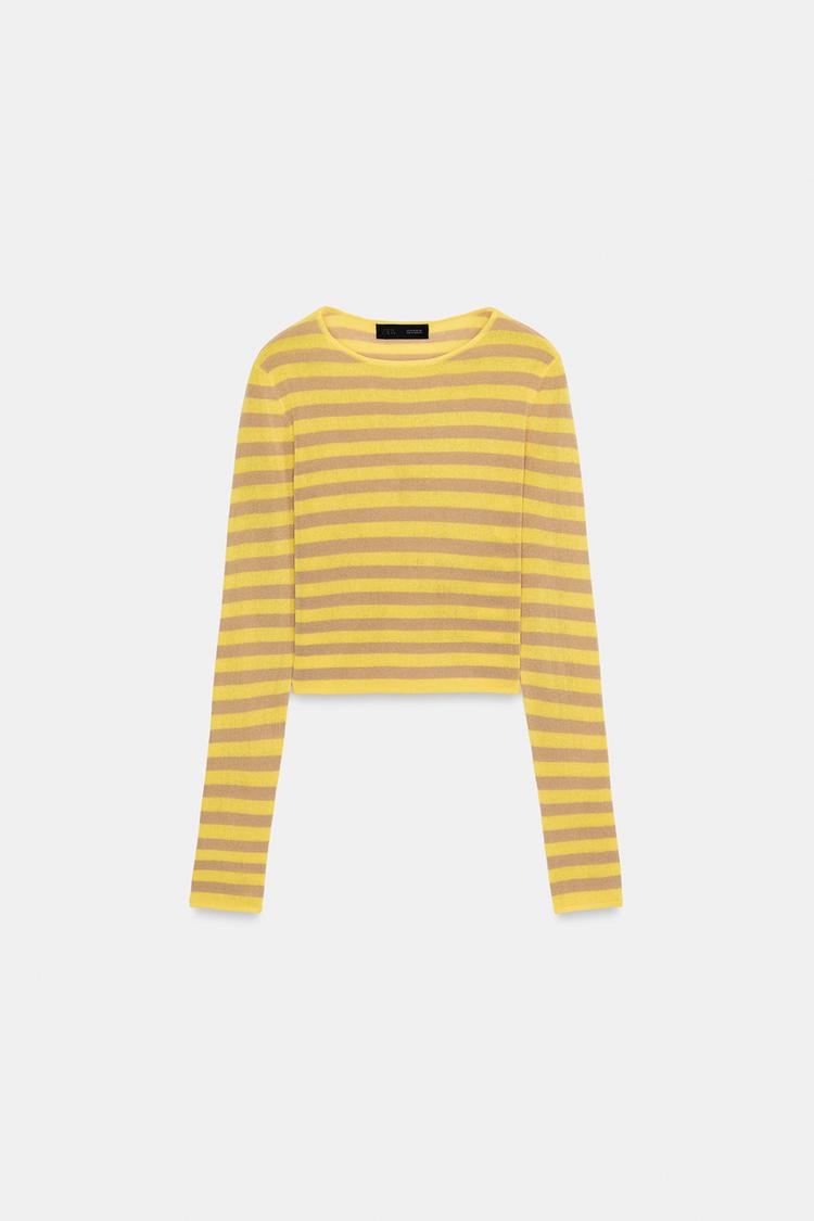 ZARA УКОРОЧЕННЫЙ ТОП В ПОЛОСКУ, ЭКРЮ/ЖЕЛТЫЙ