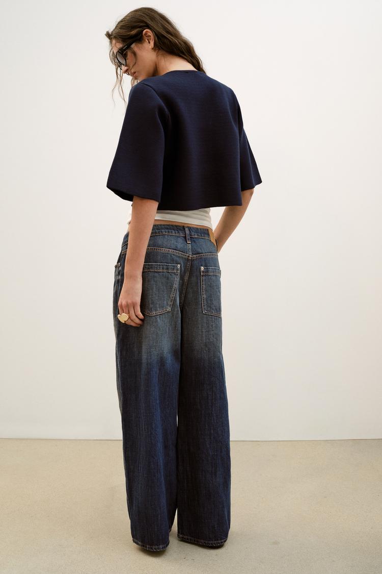 ZARA УКОРОЧЕННЫЙ ВЯЗАНЫЙ КАРДИГАН, МОРСКОЙ СИНИЙ