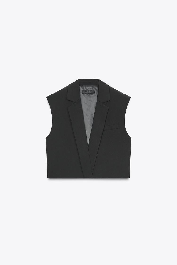 ZARA УКОРОЧЕННЫЙ ЖИЛЕТ С ЛАЦКАНАМИ, ЧЕРНЫЙ