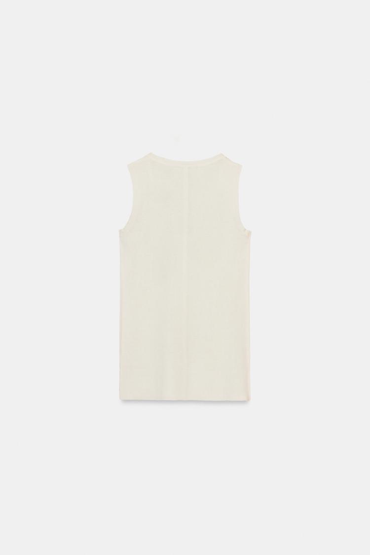 ZARA УЛЬТРАТОНКИЙ ТОП ИЗ СМЕСОВОЙ ШЕРСТИ, ЭКРЮ