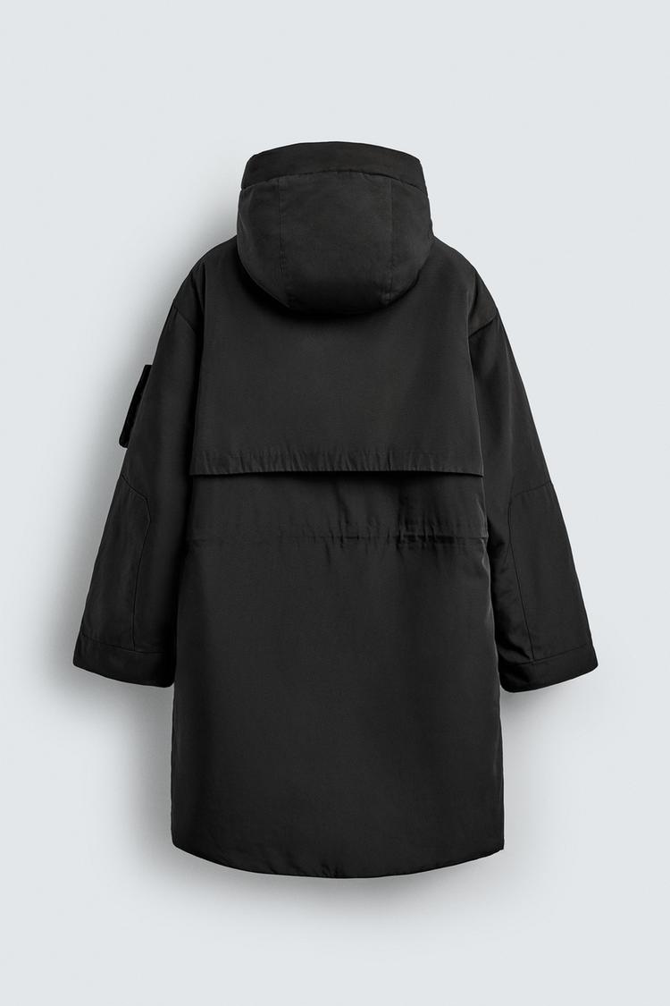 ZARA УТЕПЛЕННАЯ ТЕХНИЧЕСКАЯ ПАРКА WATER REPELLENT, ЧЕРНЫЙ