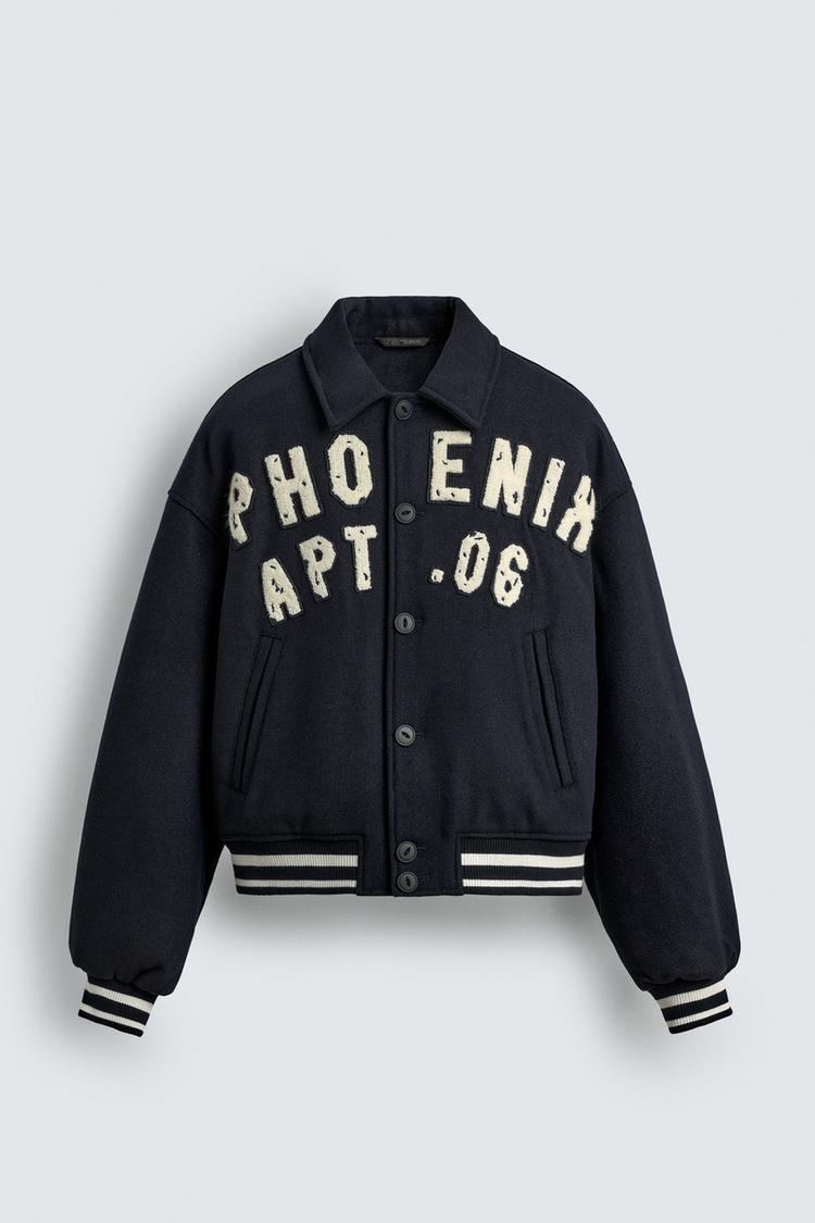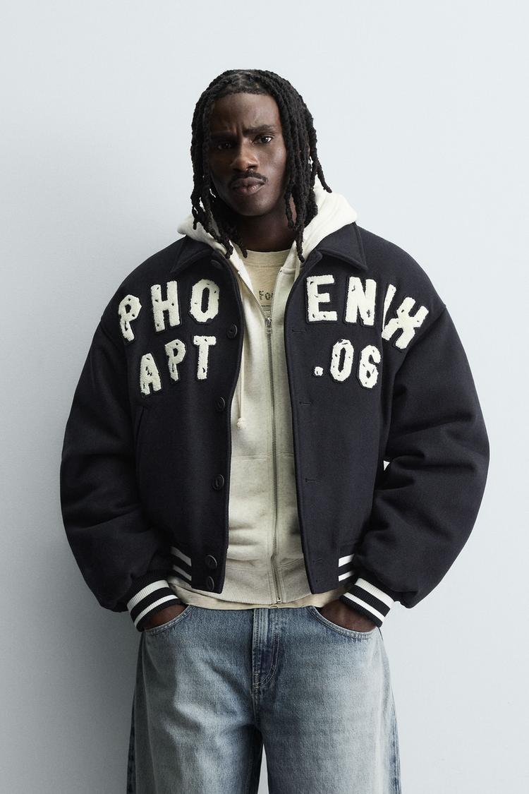 ZARA УТЕПЛЕННЫЙ БОМБЕР С НАШИВКАМИ, МОРСКОЙ СИНИЙ