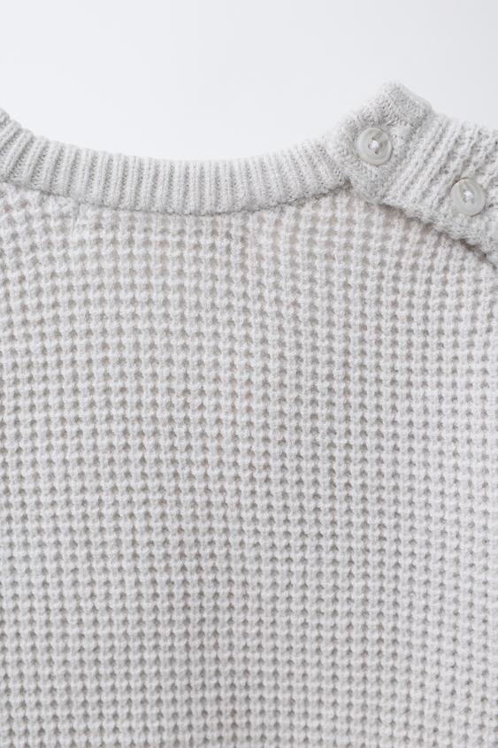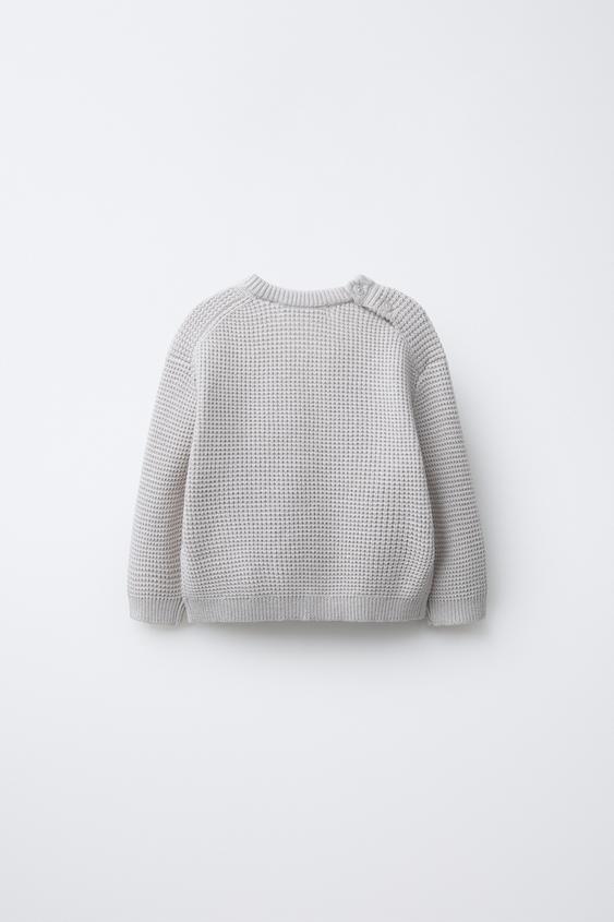 ZARA ВАФЕЛЬНЫЙ ДЖЕМПЕР С НАШИВКОЙ В ВИДЕ МИШКИ, СВЕТЛО-СЕРЫЙ