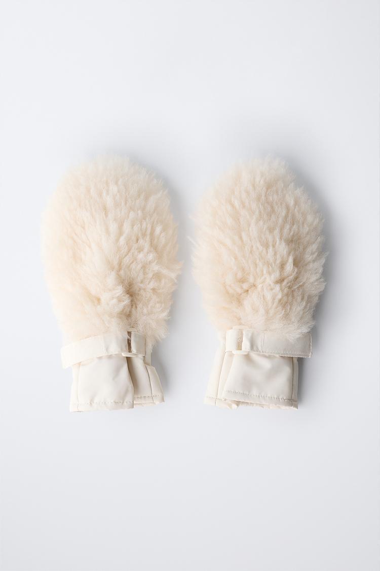 ZARA ВАРЕЖКИ С ОТДЕЛКОЙ ИЗ ИСКУССТВЕННОГО МЕХА, ЦВЕТ ЛЬДА